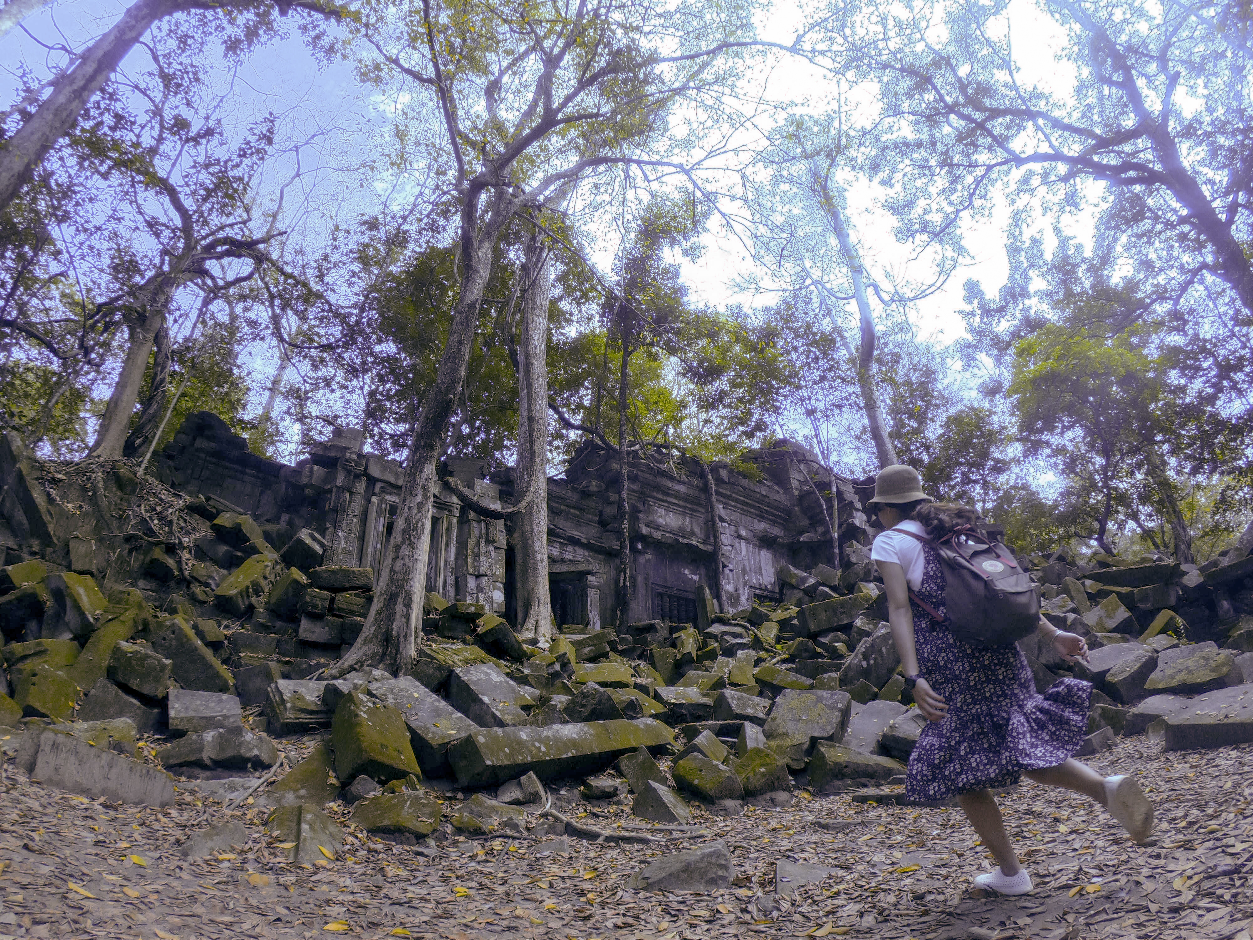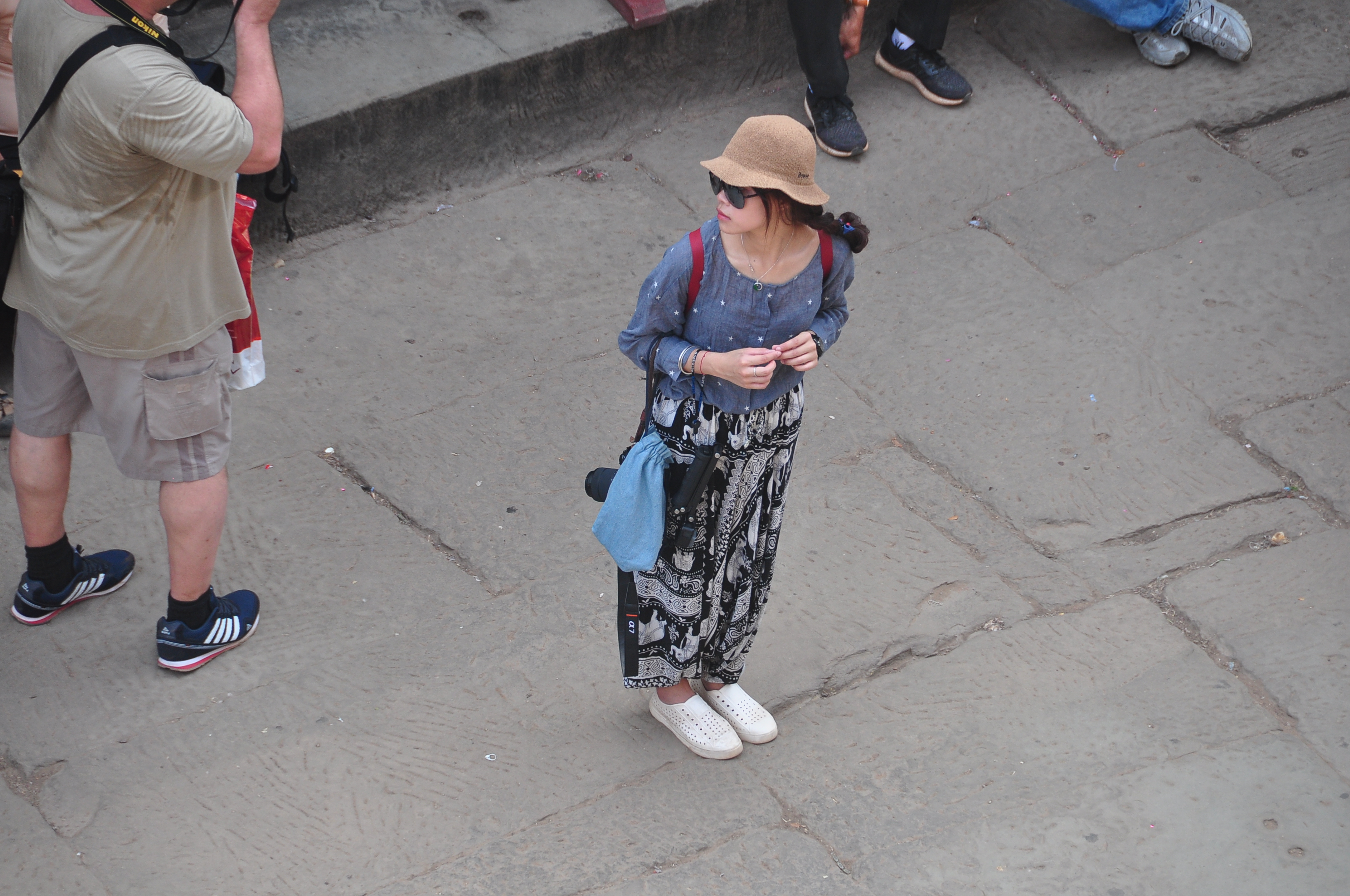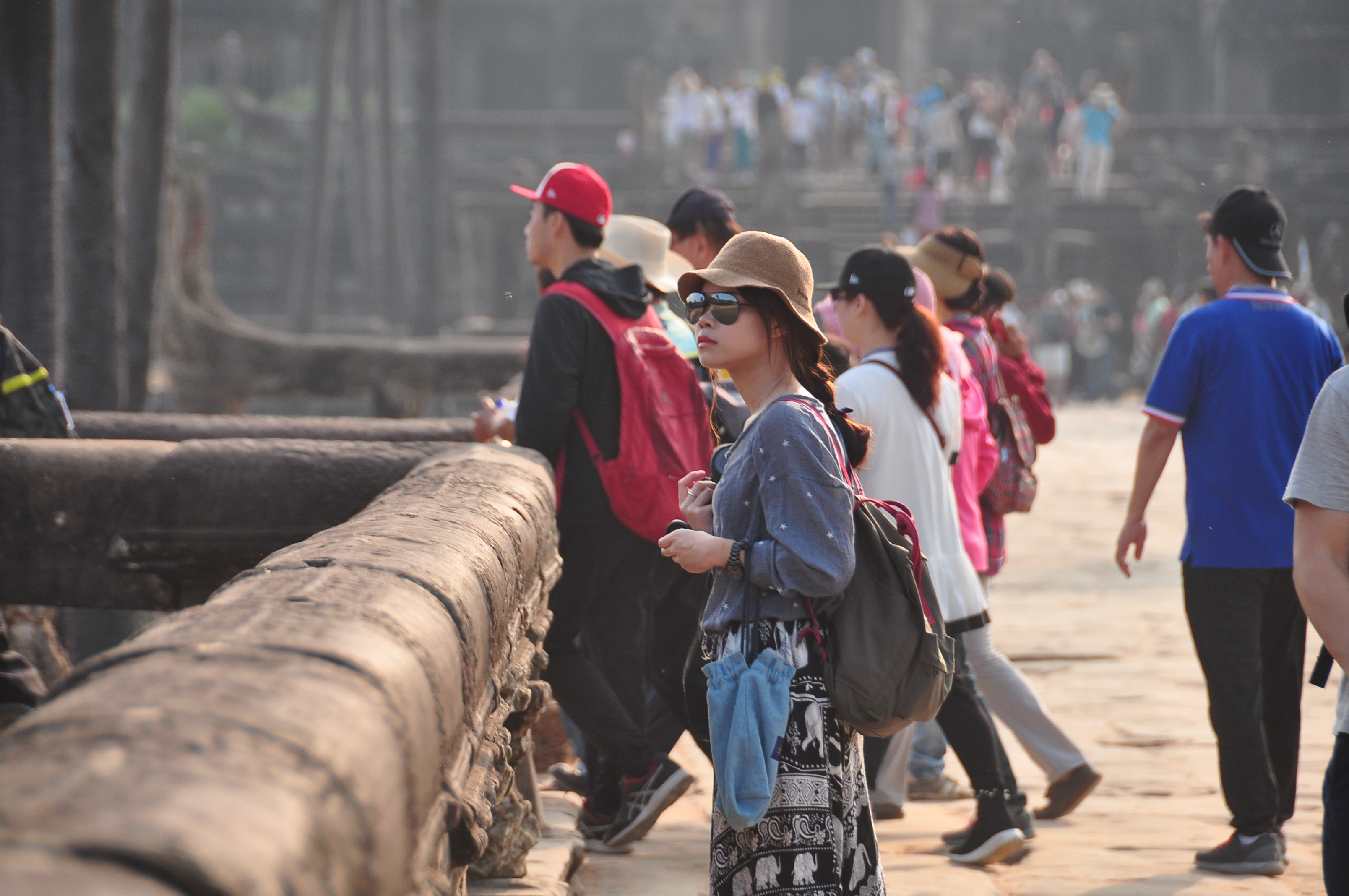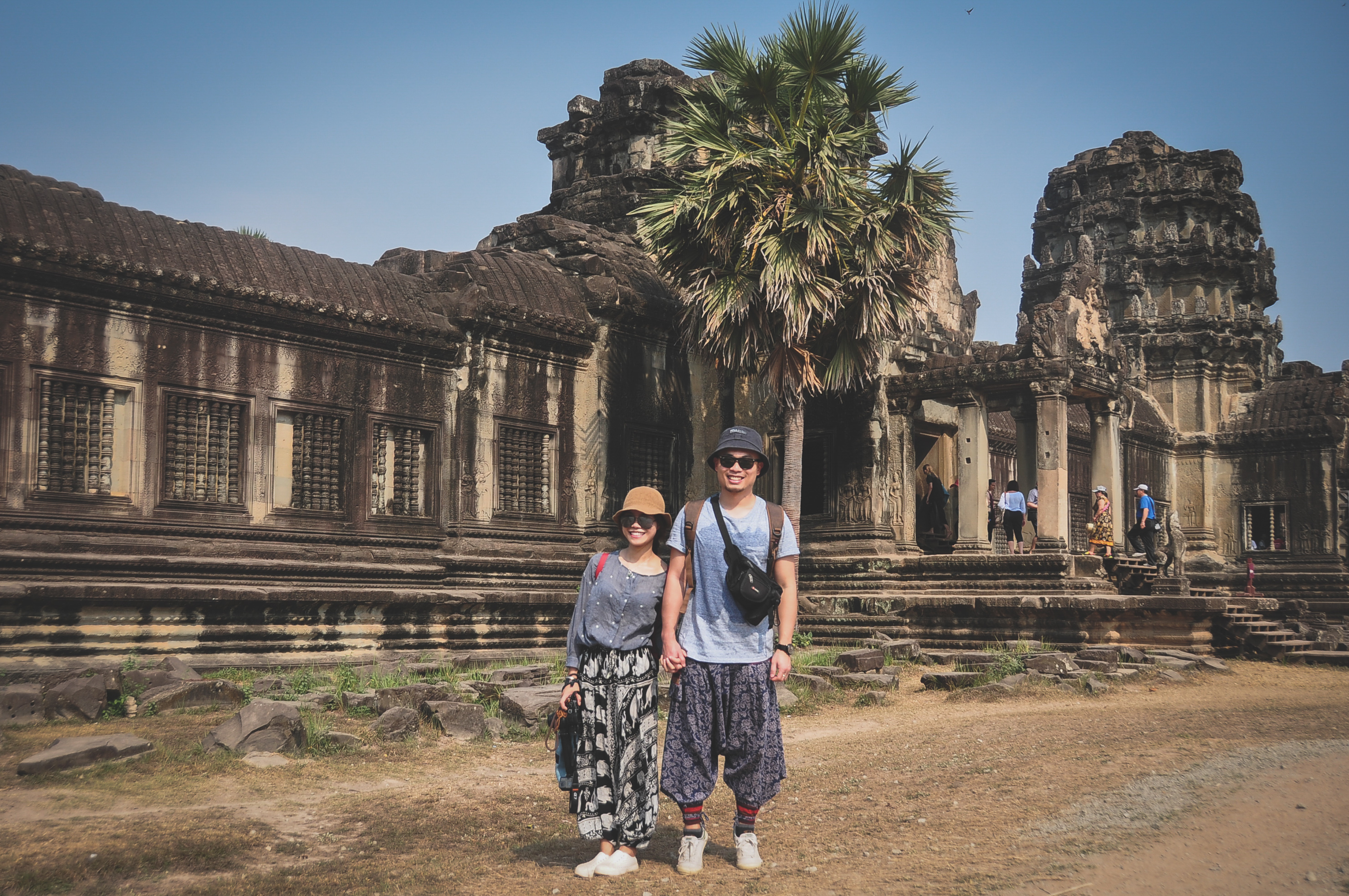 一整天的吴哥窑。我没有长裤,穿的是他的裤子,超长的哈哈哈。一开始他说不上去第三层的,可是后来他又在排队,可是我已经没有排队了,只能不上去了,那时候其实有点生气的,可是团友在后面咧,就只能自己一边玩去了。等到他下来,他说他在上面站了好几分钟,想让我帮他拍照,可是一脸懵逼的我哪知道,他就只能拍我了。