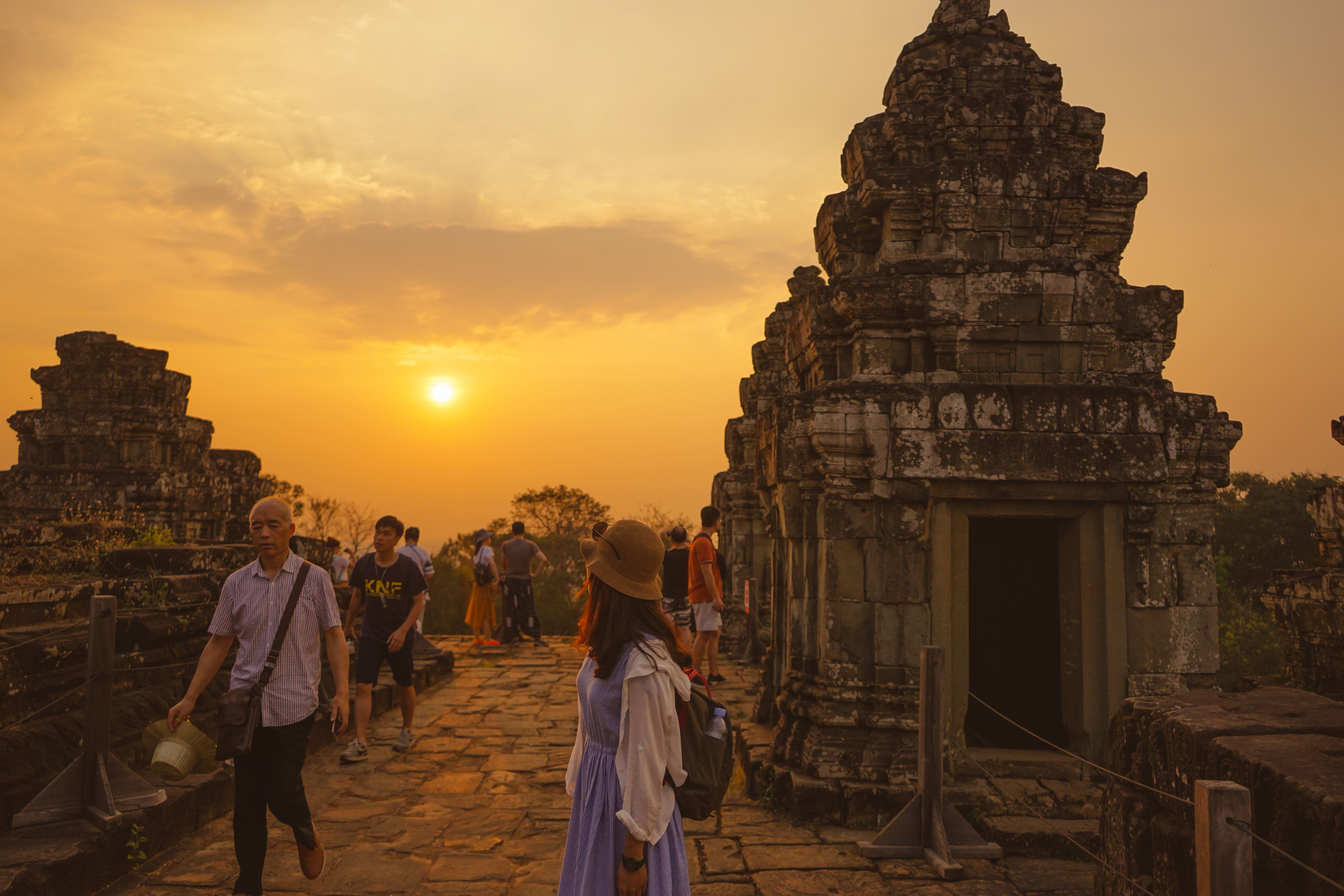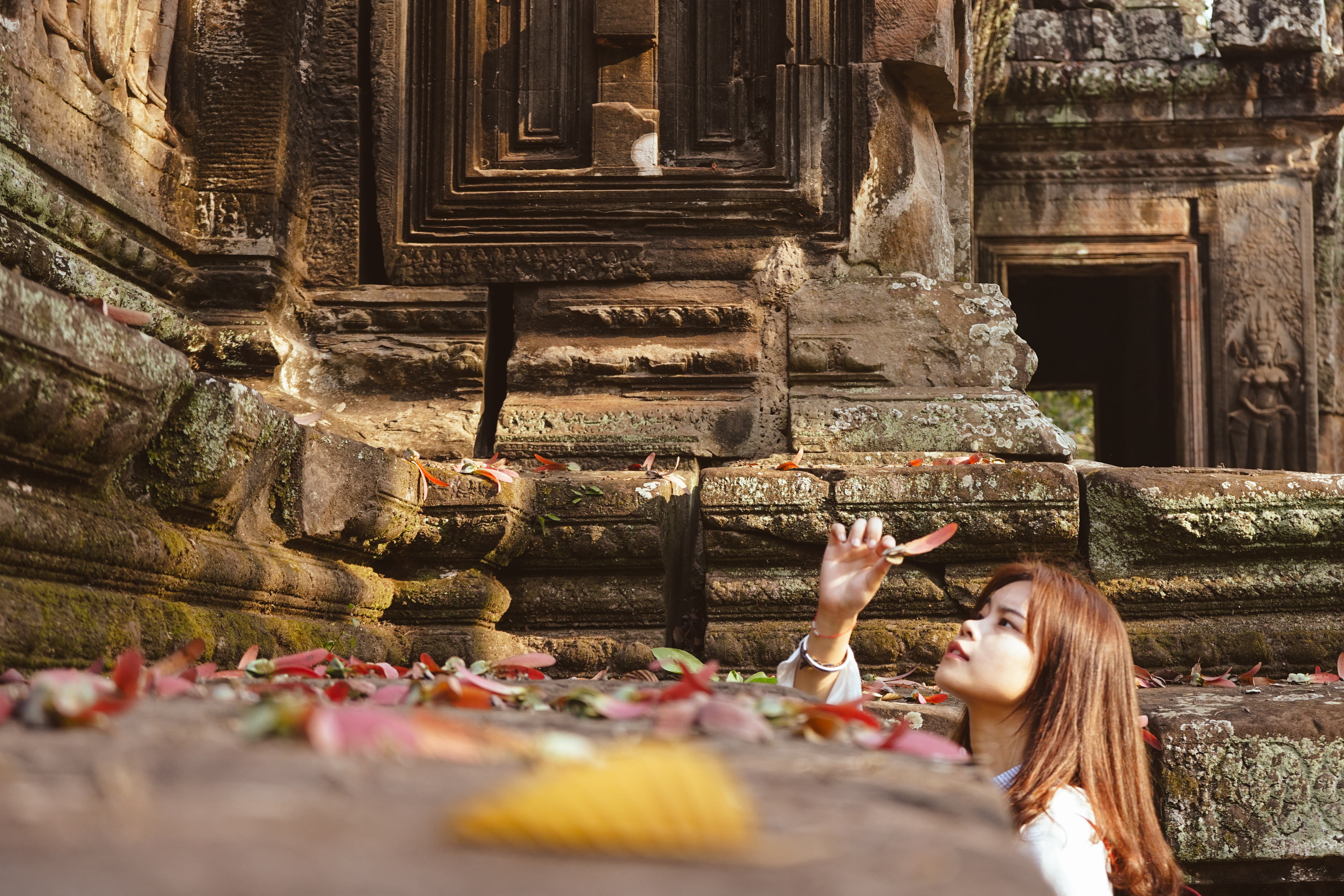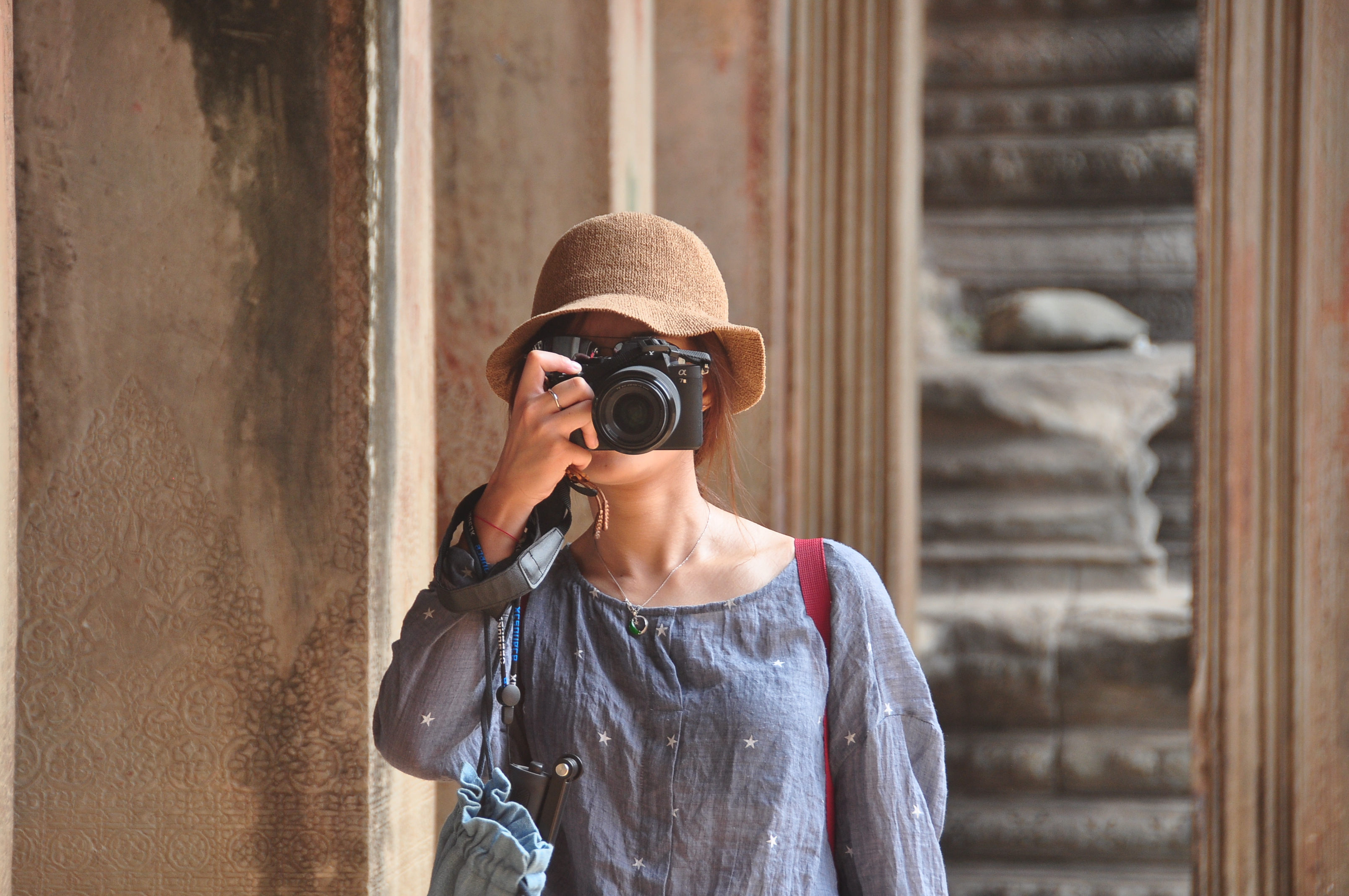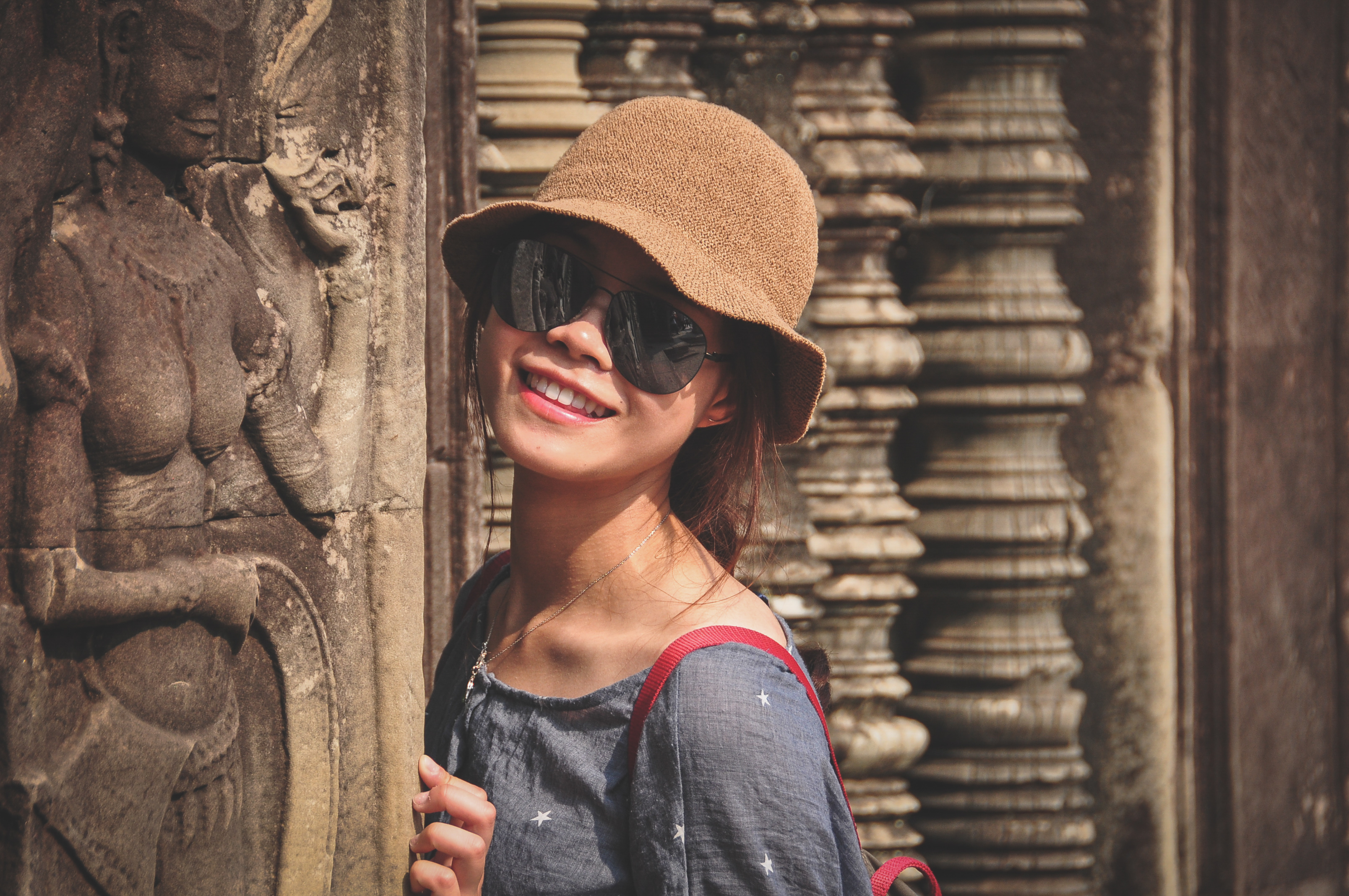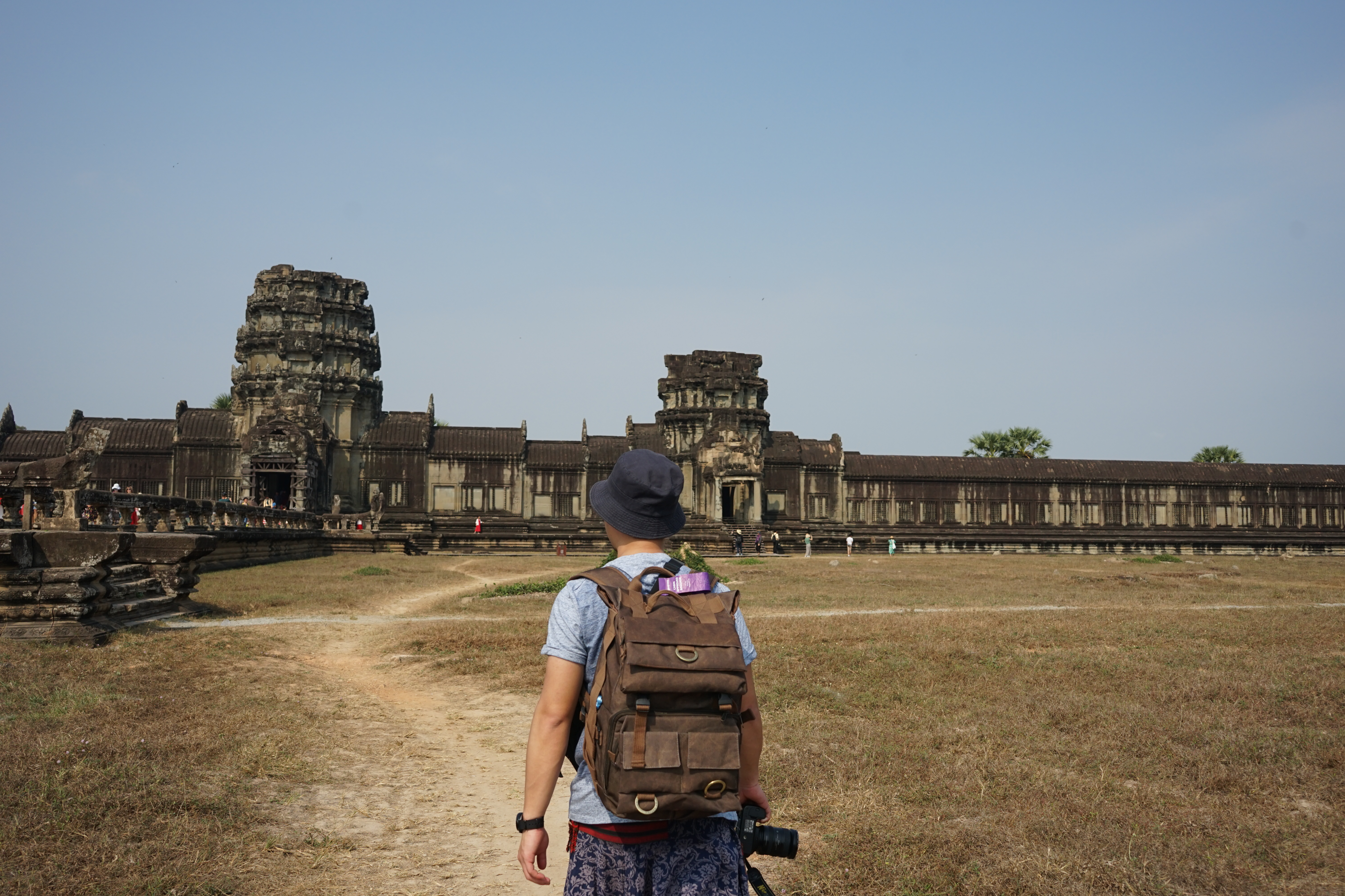 一整天的吴哥窑。我没有长裤,穿的是他的裤子,超长的哈哈哈。一开始他说不上去第三层的,可是后来他又在排队,可是我已经没有排队了,只能不上去了,那时候其实有点生气的,可是团友在后面咧,就只能自己一边玩去了。等到他下来,他说他在上面站了好几分钟,想让我帮他拍照,可是一脸懵逼的我哪知道,他就只能拍我了。