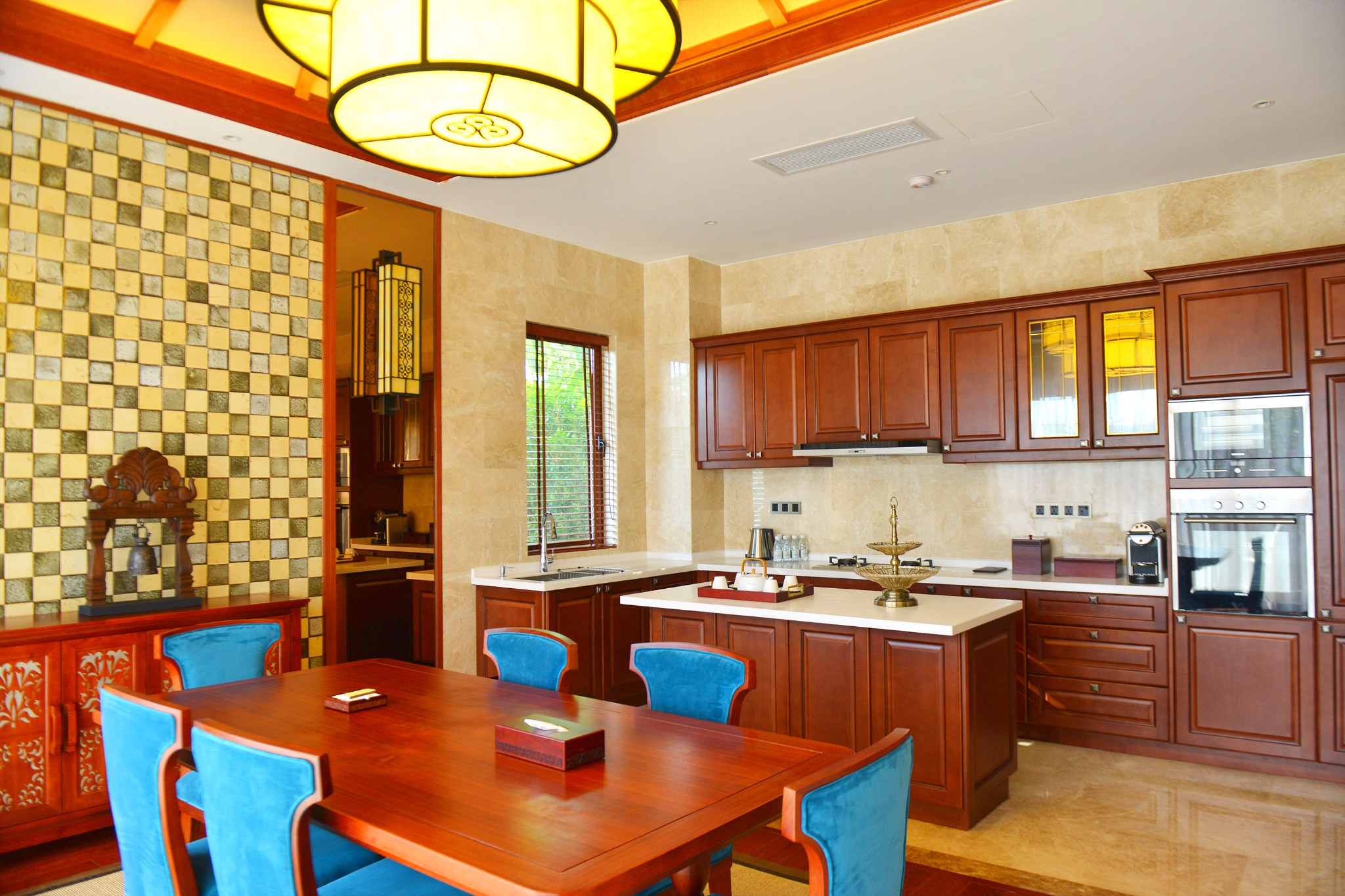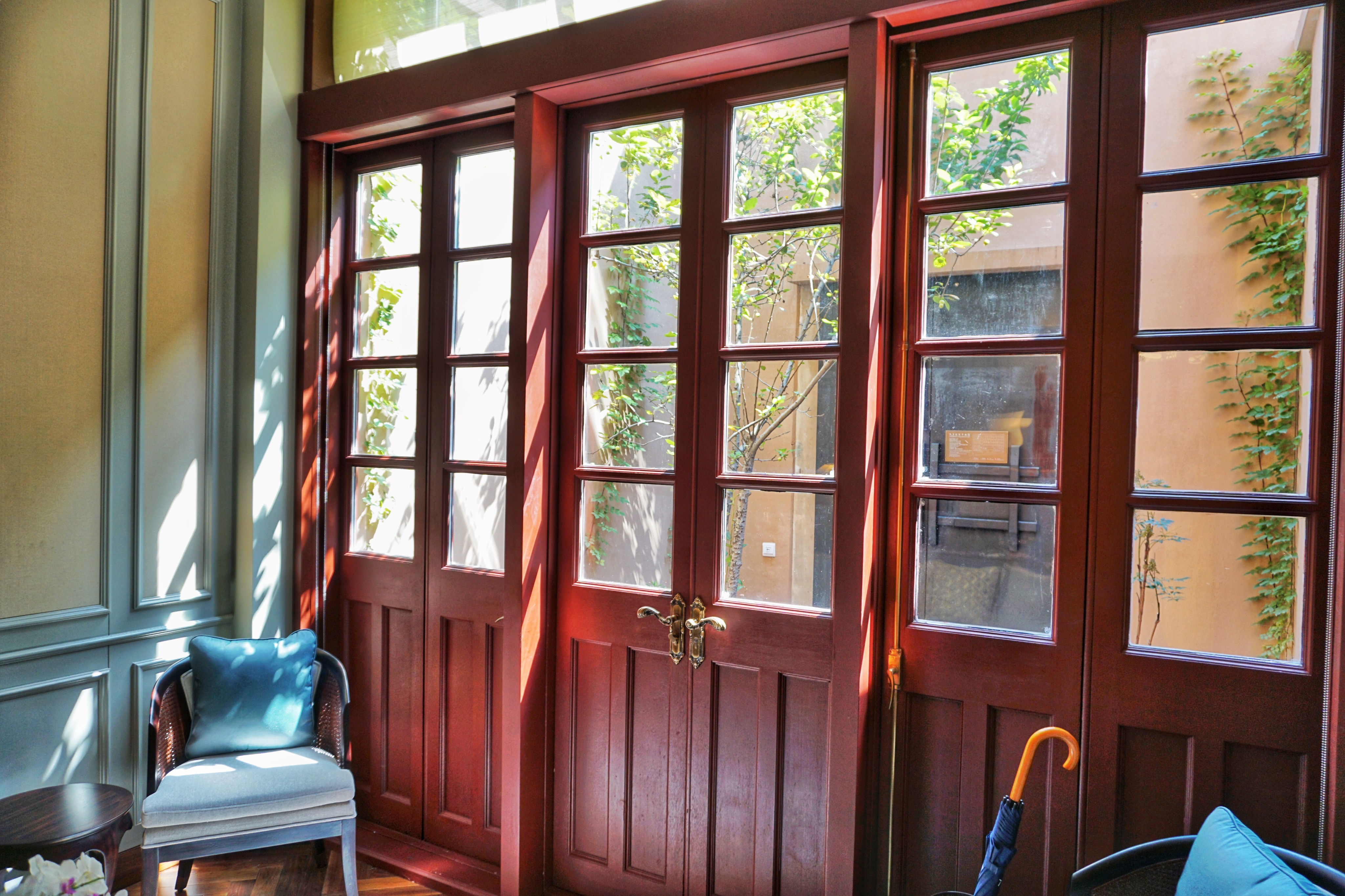 整个大堂为徽派建筑“大夫第”,是曾经的将军府门厅,被安麓购买之后,一一拆分标记后,平移至上海朱家角重新搭建。