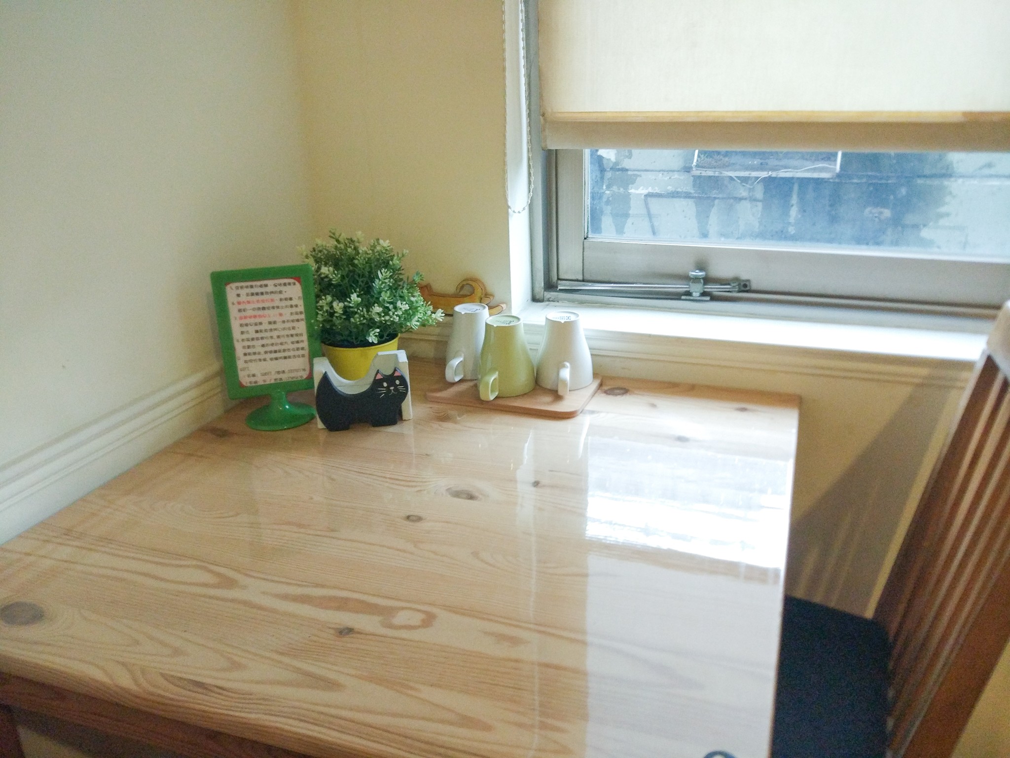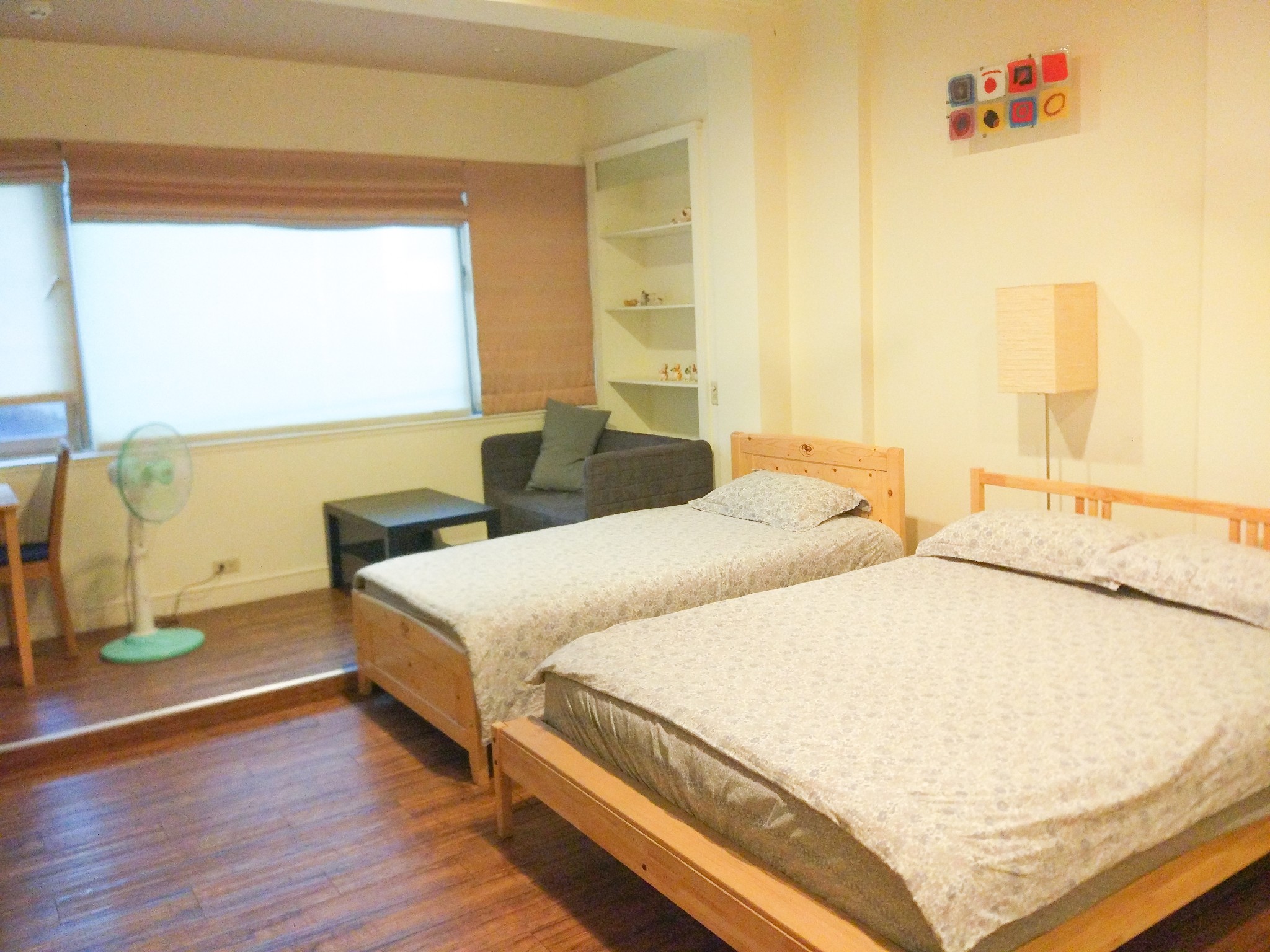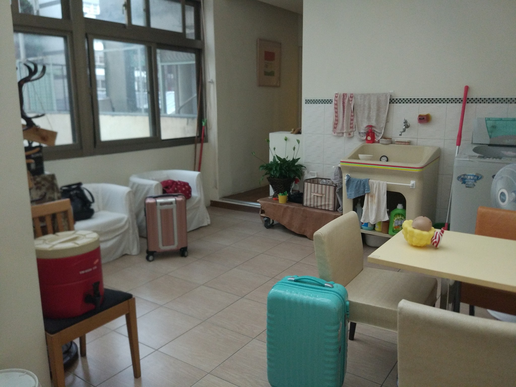 2、一家不知道名字的民宿爱彼迎上定的地点:市东区大勇街20号推荐指数:5星+老板很神秘,入住全程像破案一样找线索,蛮有趣的。主要是我们去的时候,整栋楼都没有人!都没有人!等于说我们承包了一栋5层建筑,带铺面和!装修也很新,很清新的风格,楼里面随便上蹿下跳。当时外面在下雨,我们住的那一层正好最大,有一个市内露台,干干爽爽的坐在里面喝喝咖啡看看雨,感觉真棒。像家!温馨!大而敞亮!而且,escape from daily life !!!位置也超好的,出门就是车站,对面就是宫原眼科。爱彼迎上一定的也很便宜!