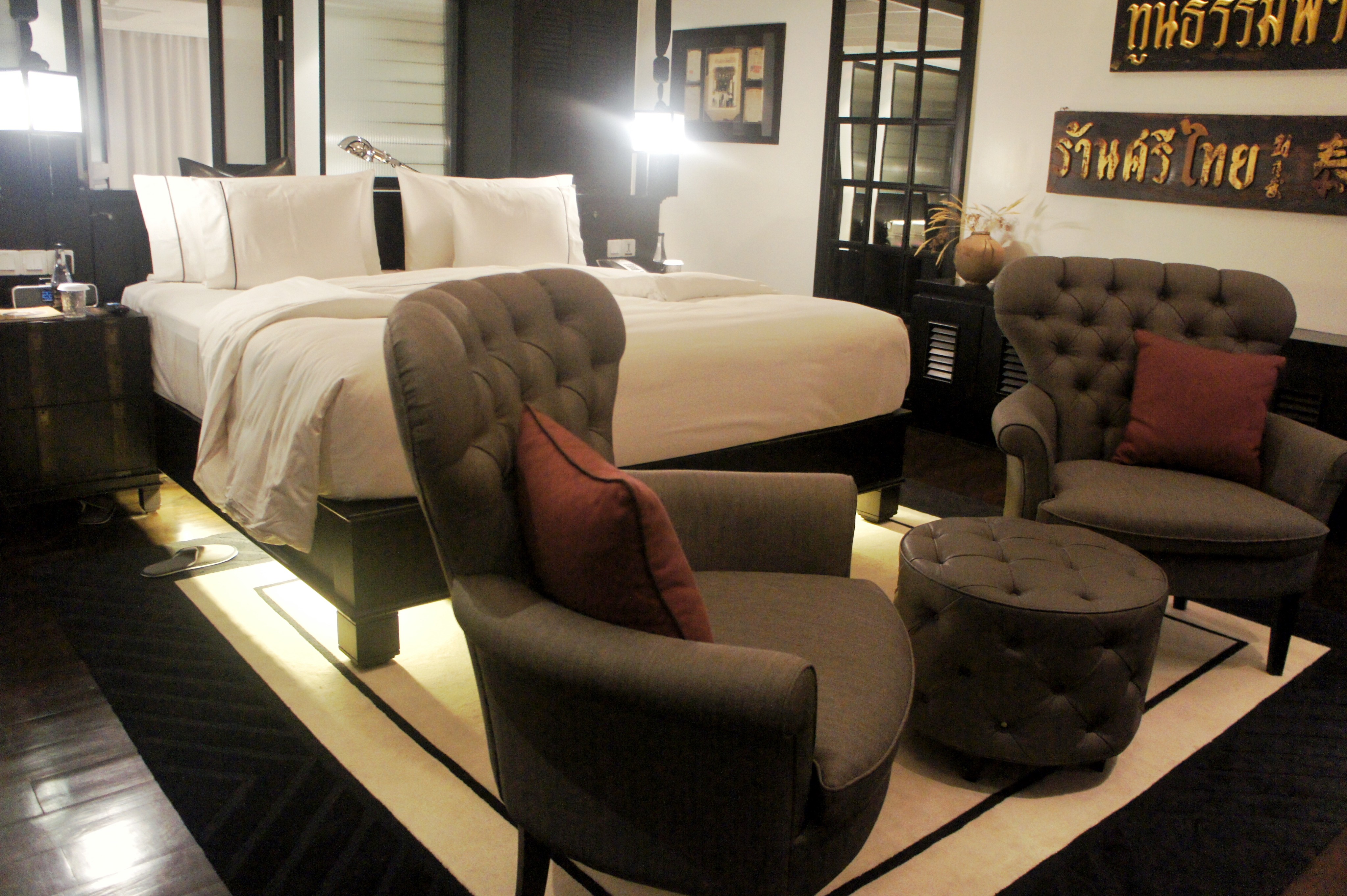 房间也很大,这是我是,床后边那个门走进去是浴室也很大,还有沙发对面是电视,墙后面还有一块会客区域。房间的墙壁上有很多古老的泰文+中文的招牌。具体可以看我曼谷游记~6.Honeymoon Petra Villas希腊圣托里尼岛上的酒店,当时的房型现在好像改造没有了,6k5。