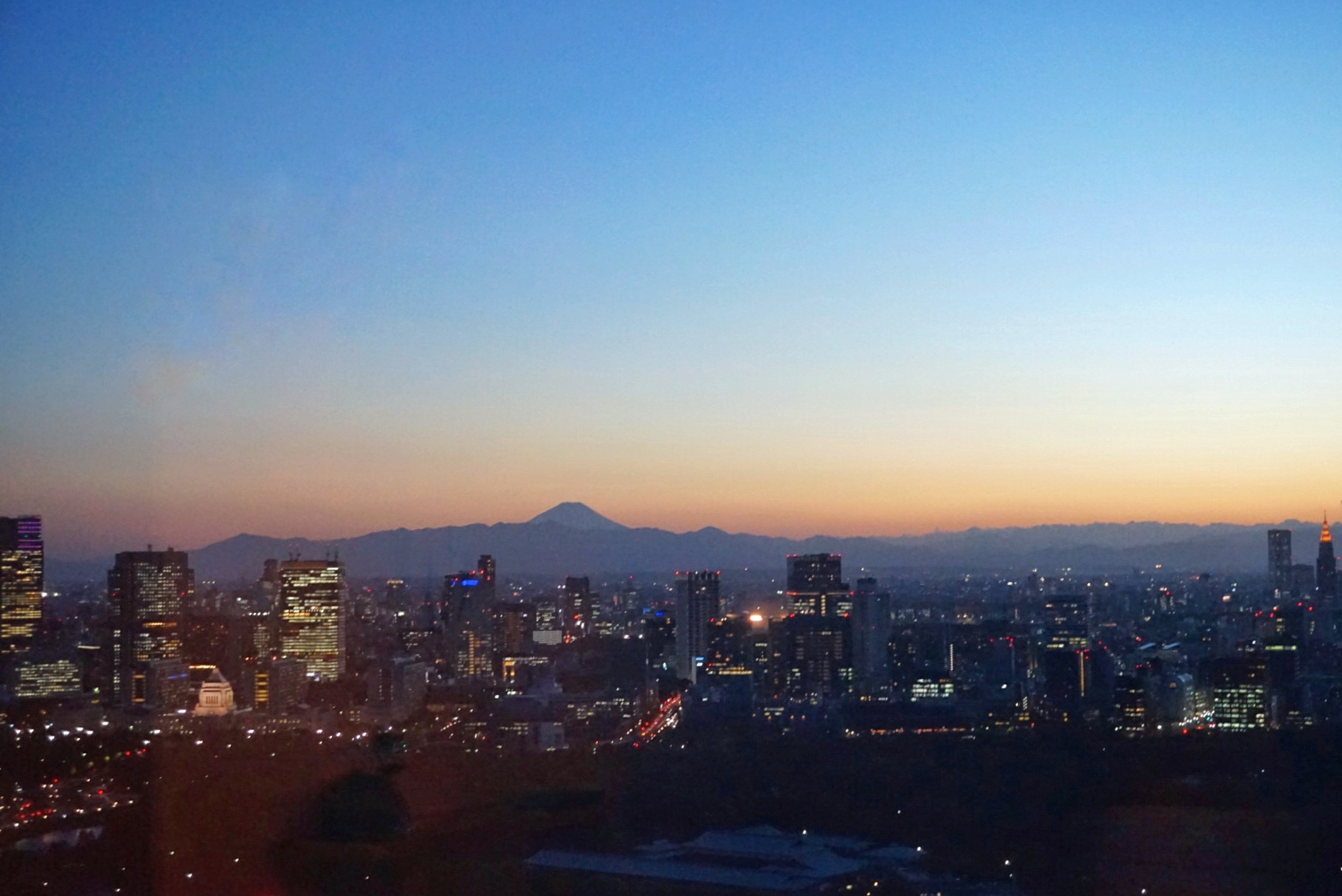 客房设施无可挑剔,正对楼下皇居,左前方可见富士山,晚上夜景杠杠滴。