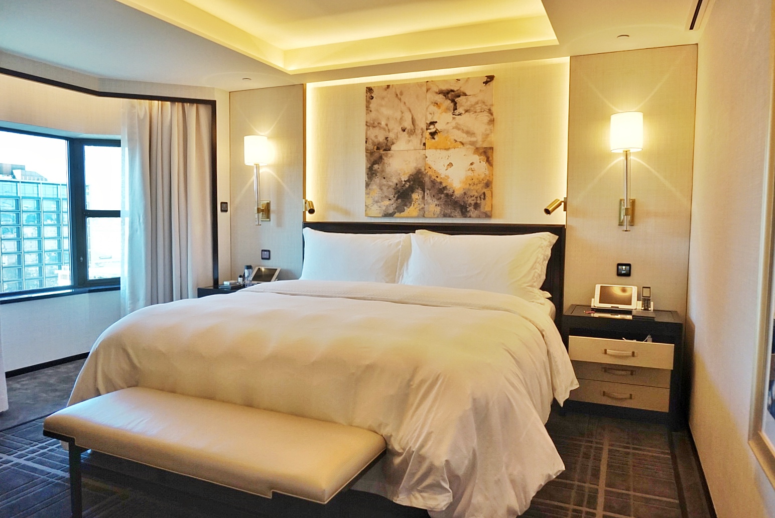 北京王府半岛是由以前的王府井酒店改造而成,因为是老建筑改建,所以房间的格局不算好。