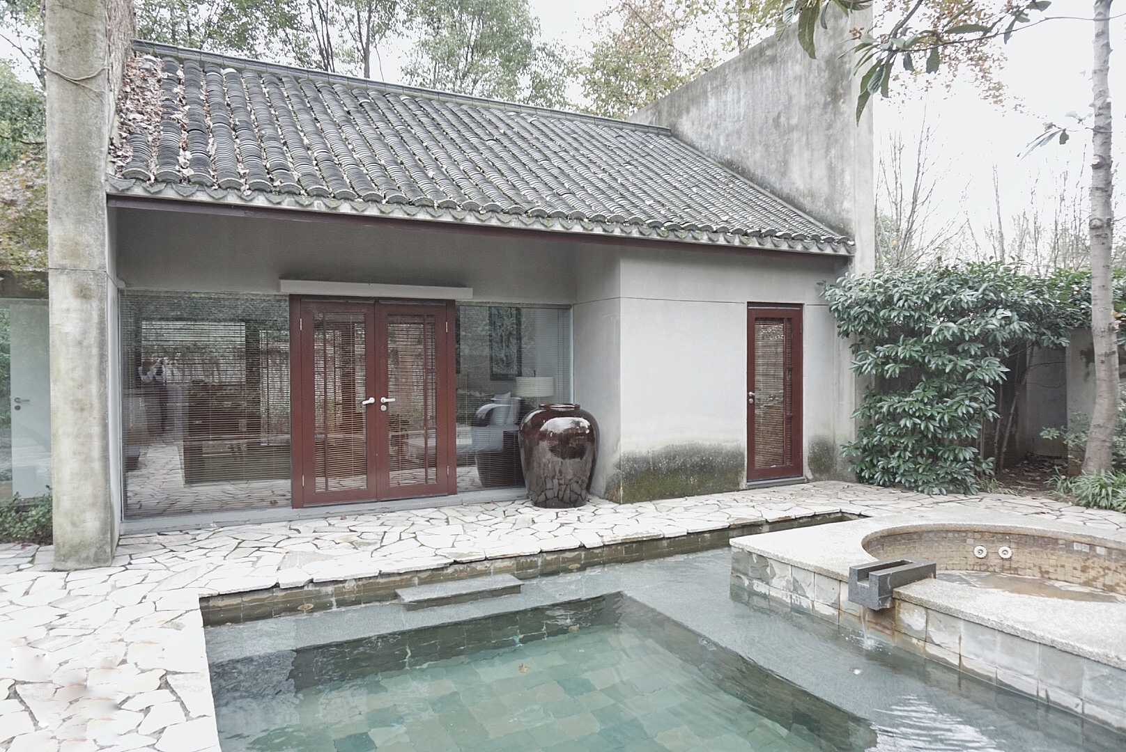 Spa的公共区域泳池美如画。冬天去南京泡汤的话很推荐。16.阿丽拉·安吉湖景别墅,136平,单晚房价3k+