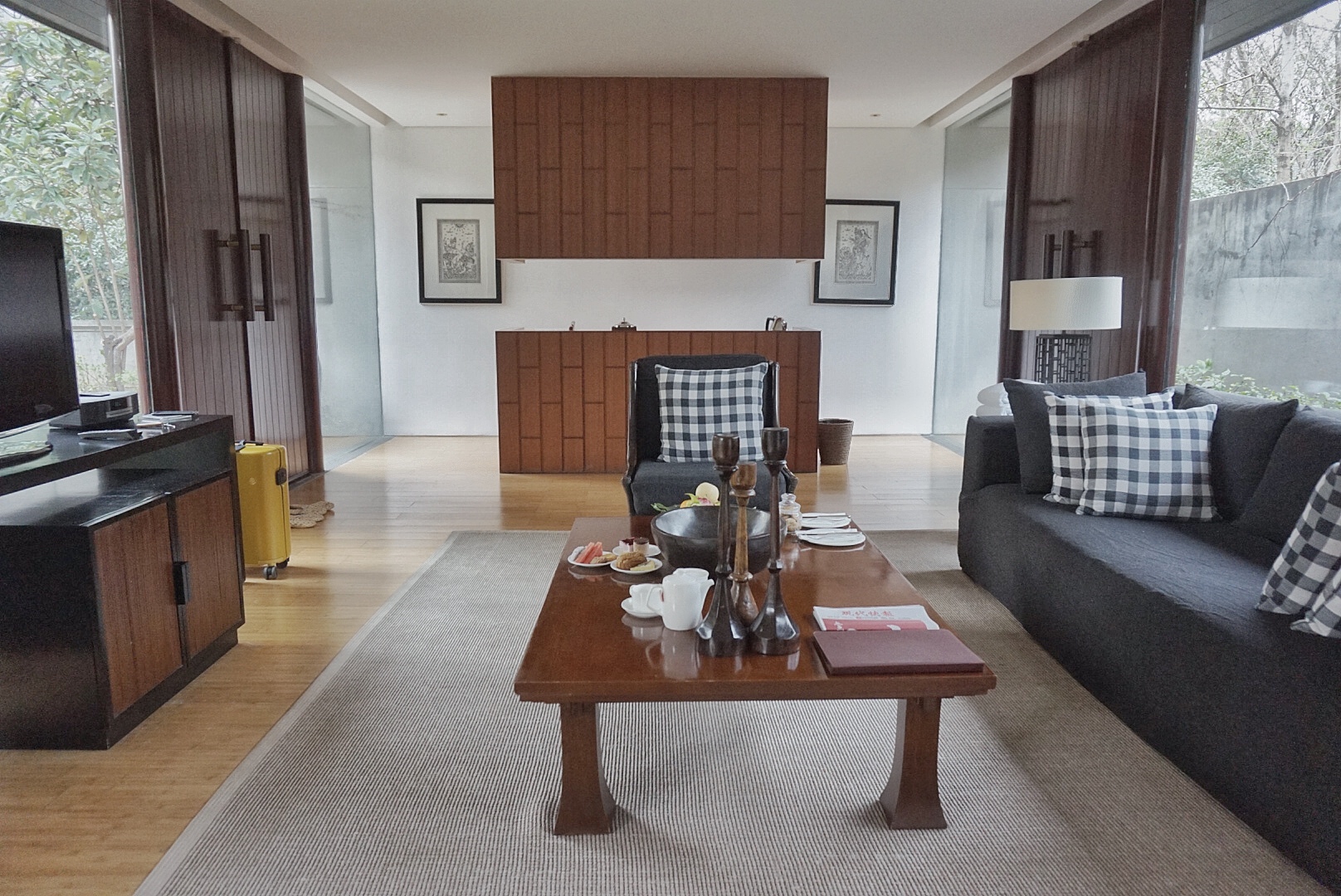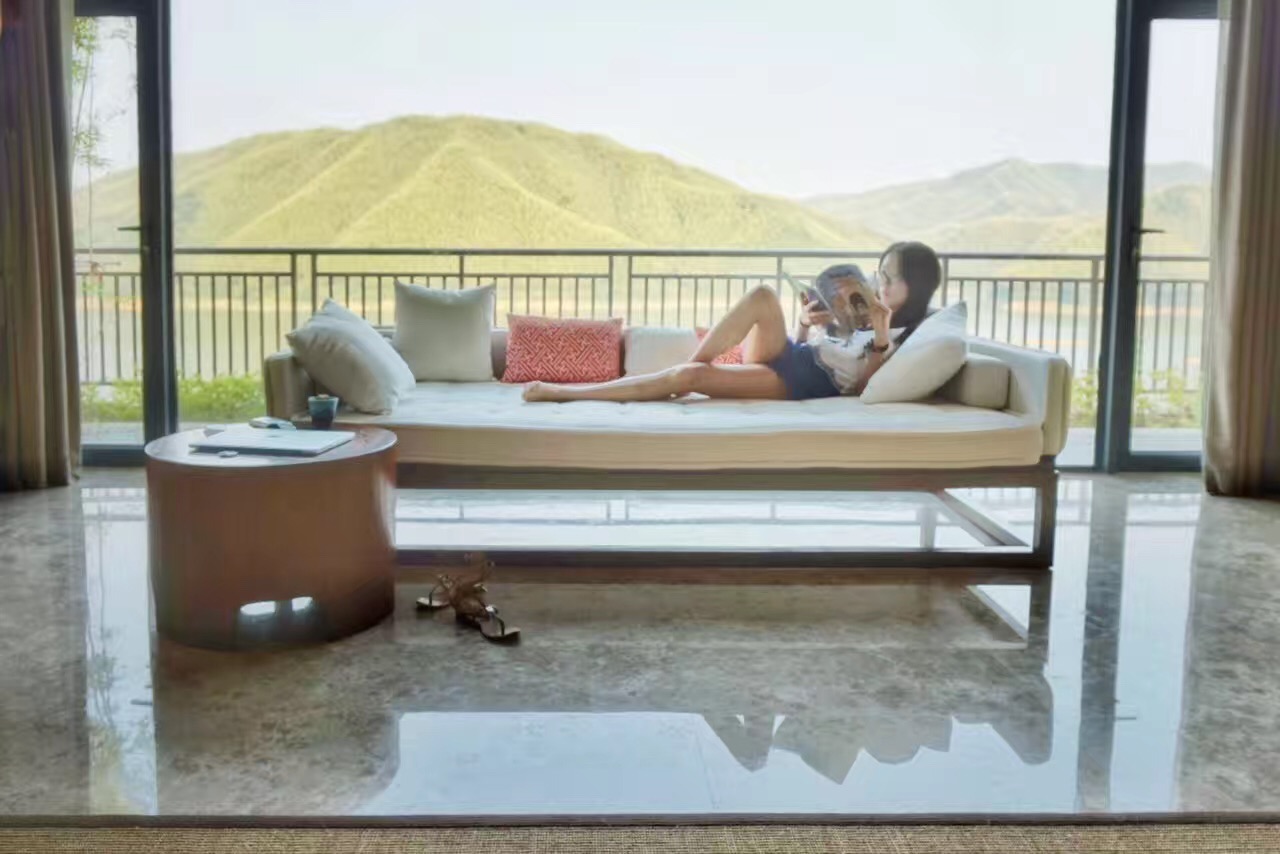 大厅接待处也尽显中式美感。阳庭阁客房都是全新的建筑,内装是现代中式风,120平巨大,还有小院子。夏天的话推荐池苑阁,自带泳池。23.绍兴兰亭安麓酒店阳明阁,160平,单晚房价3k5左右。