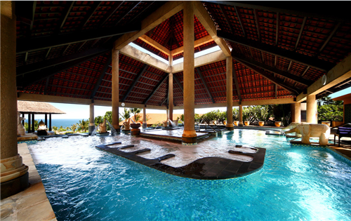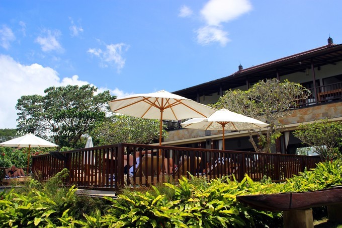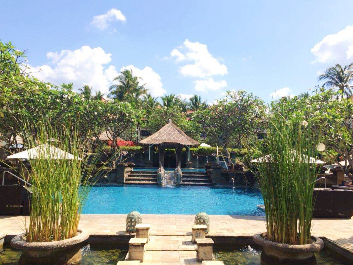 Pan Pacific,是巴厘岛面积最大的五星级酒店,建造在印度洋边上,与海神庙遥相呼应,还有大片大片的高尔夫球场,各种各样泳池什么的.....