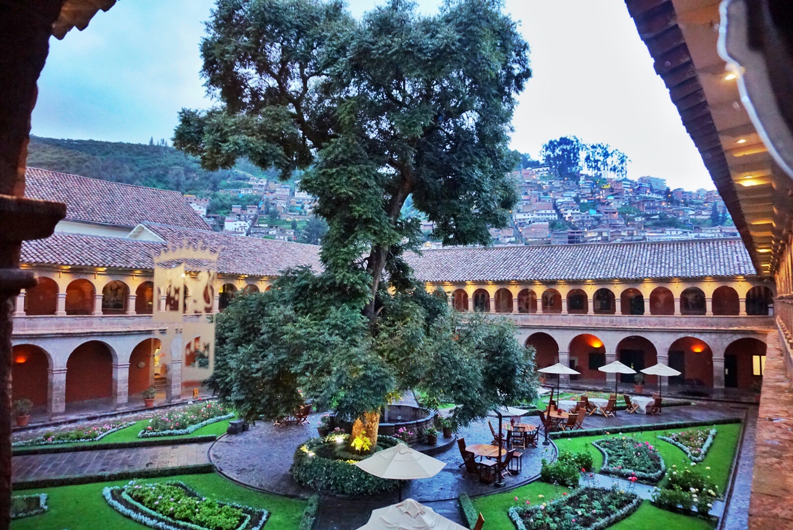 修建于1592年的修道院修建在阿玛鲁·卡哈拉的印加宫殿的地基上,如今被改造成豪华酒店,历史悠久的建筑散发着沉稳的魅力。 长长的石拱门廊围砌而起一方天地,宁静的中央庭院之中矗立着的一株300年杉树,见证了曾经的一切,参天巨木聚集了些许不知名的鸟儿,于日暮之后在此嘤鸣栖息。