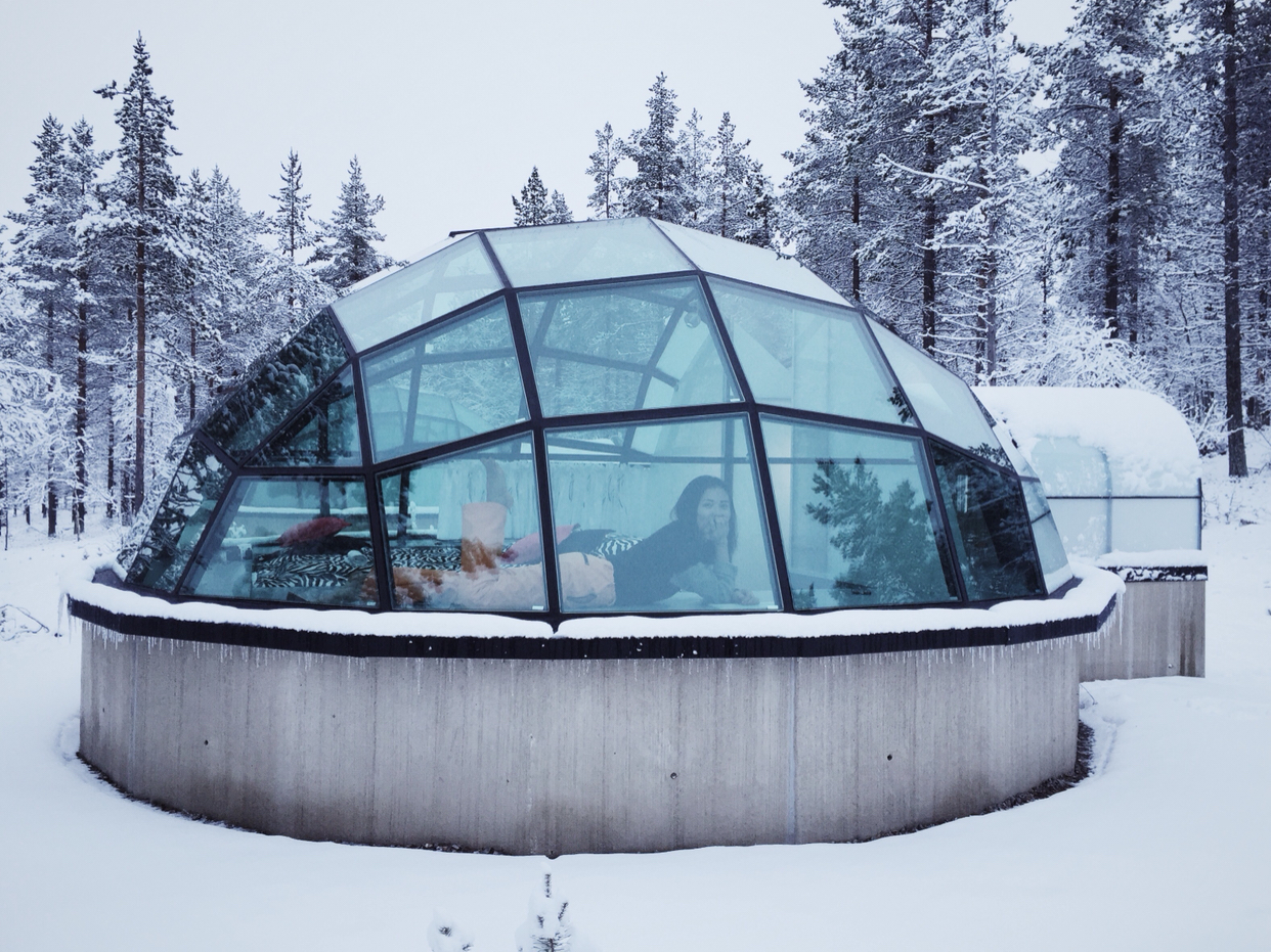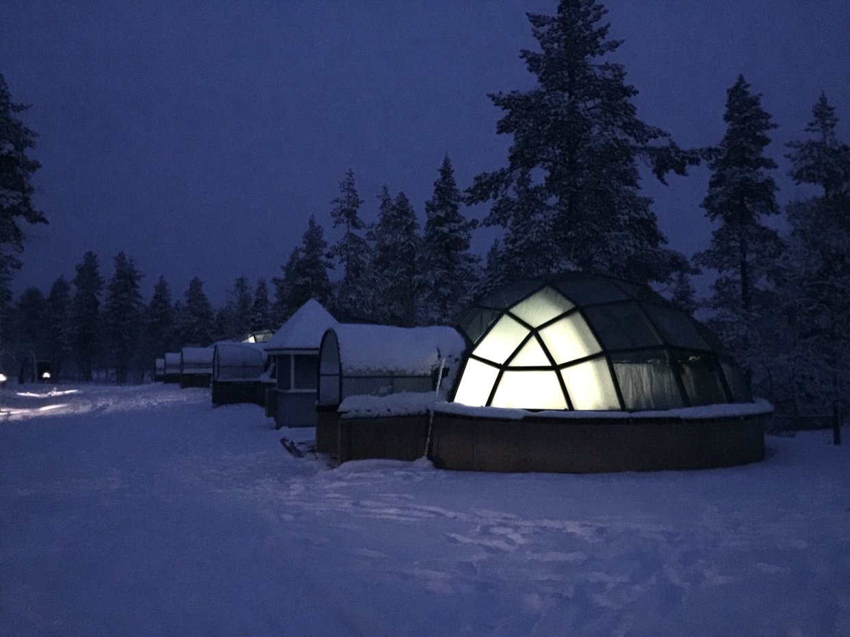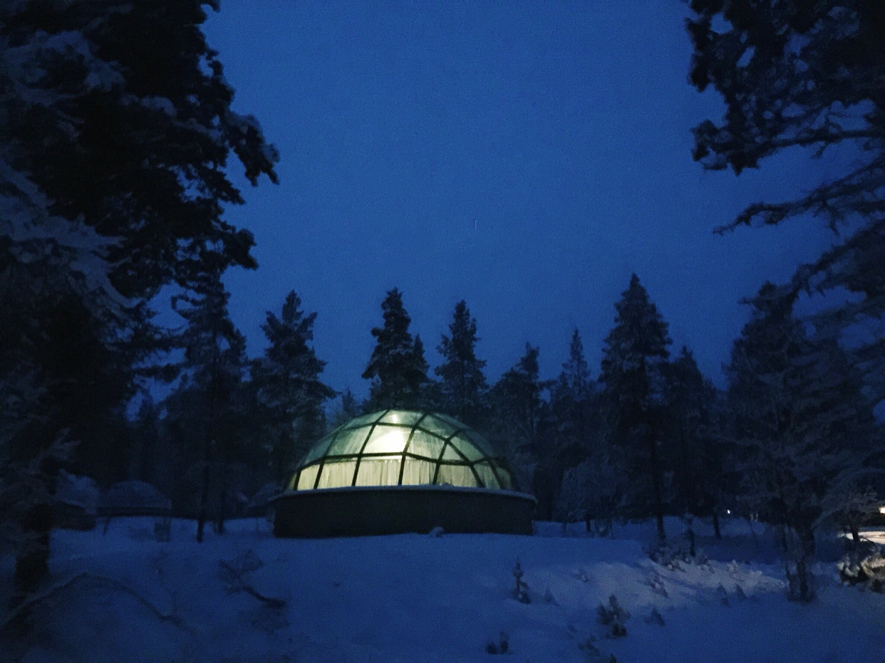 唯二遗憾:一是我十一月份去的时候还不是很冷,降雪量不大,所以雪没有很厚,房间外围没有被积雪整个包裹起来;二是我去的时候阴天,云层厚,没有躺在玻璃屋里看到外面的极光,从观测预报来看当时的极光强度是够的,只是云层太厚被遮挡了~ Anyway,能够抵达,就如我所愿,心满意足啦~