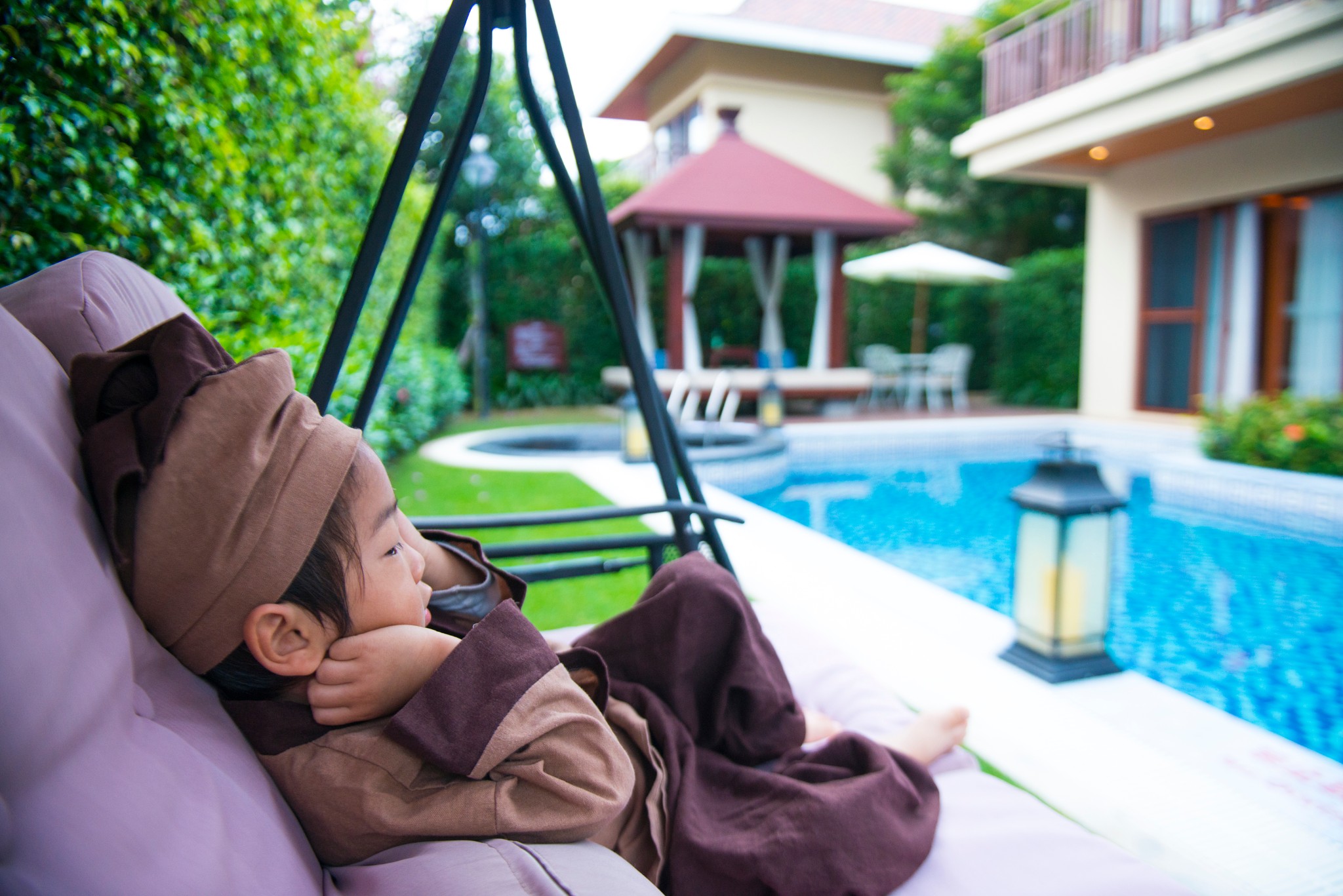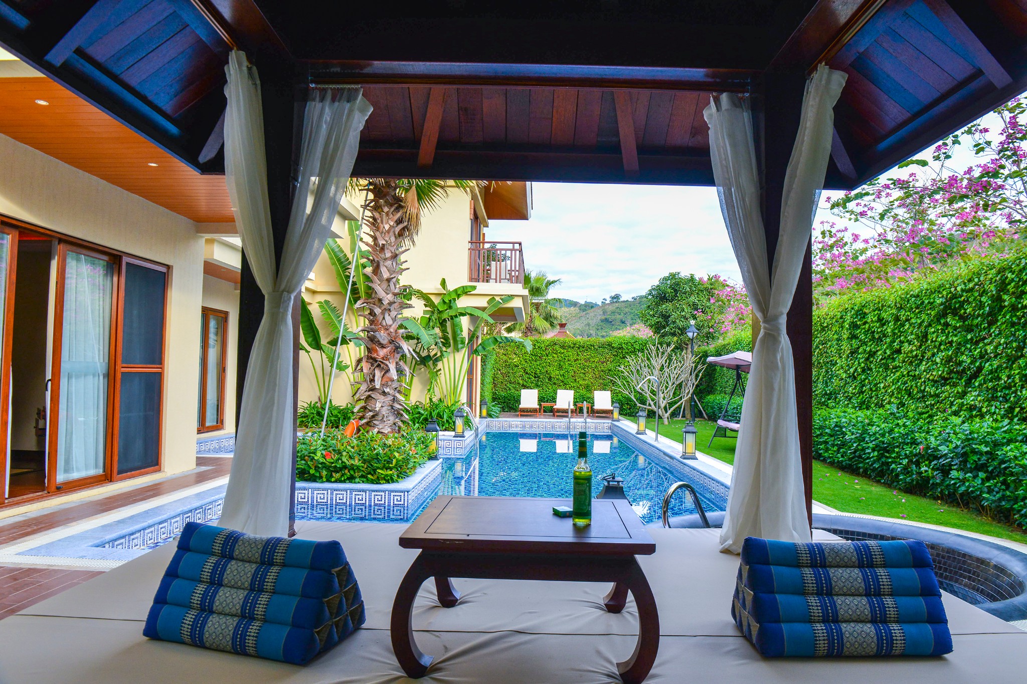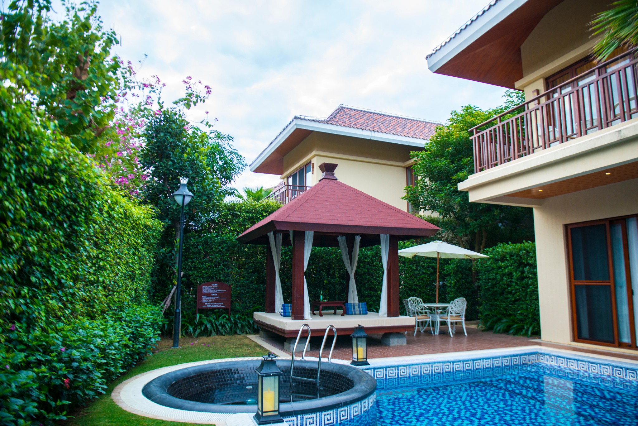 ▲后院除了泳池,还有休息晒太阳的凉亭~ 午后带上冷饮来这里午休 简直是不能再舒适了~~