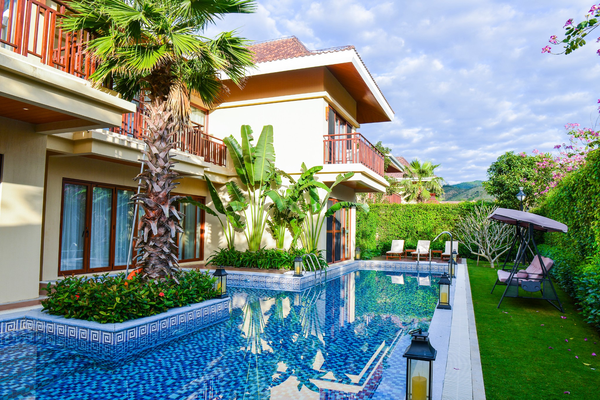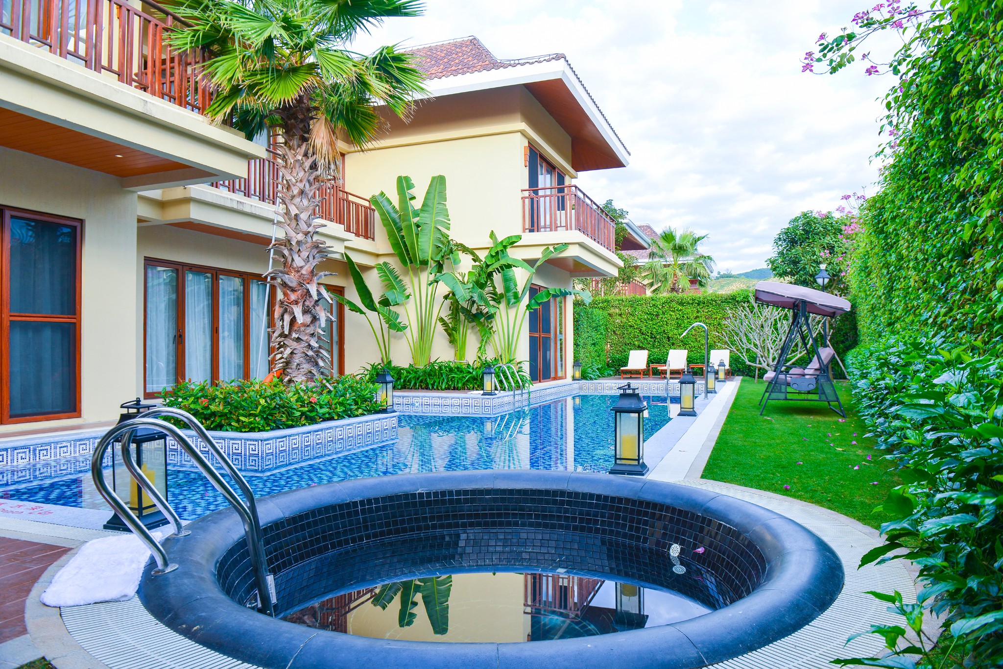 自己房间的m小型泳池真得高端大气上档次,给人以奢华的感觉!