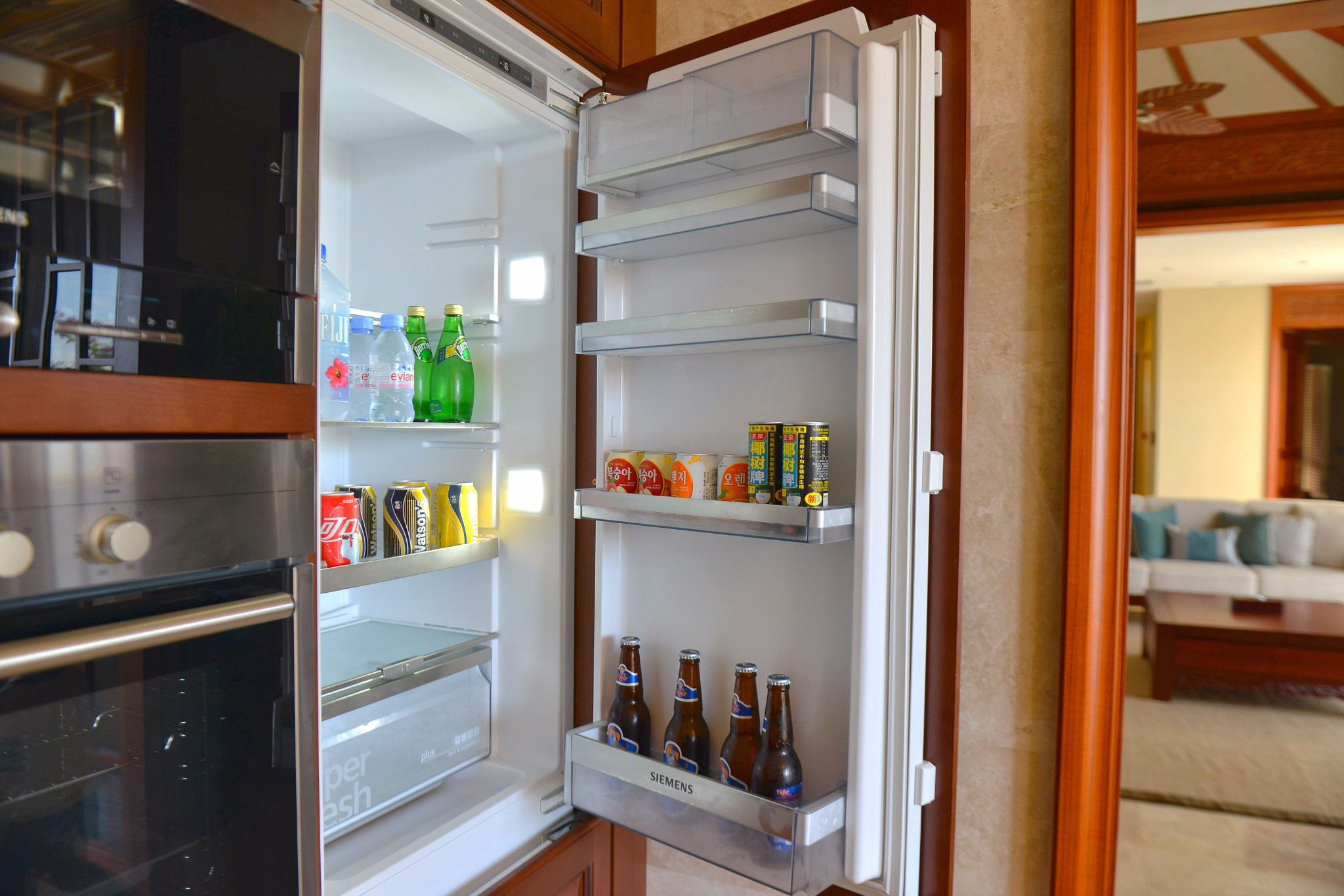 入住薄荷岛上最奢华的酒店。酒店全是平房,分为海景房、泳池房和海景别墅,我们选择的泳池房,进到房间,空调会提前打开。
