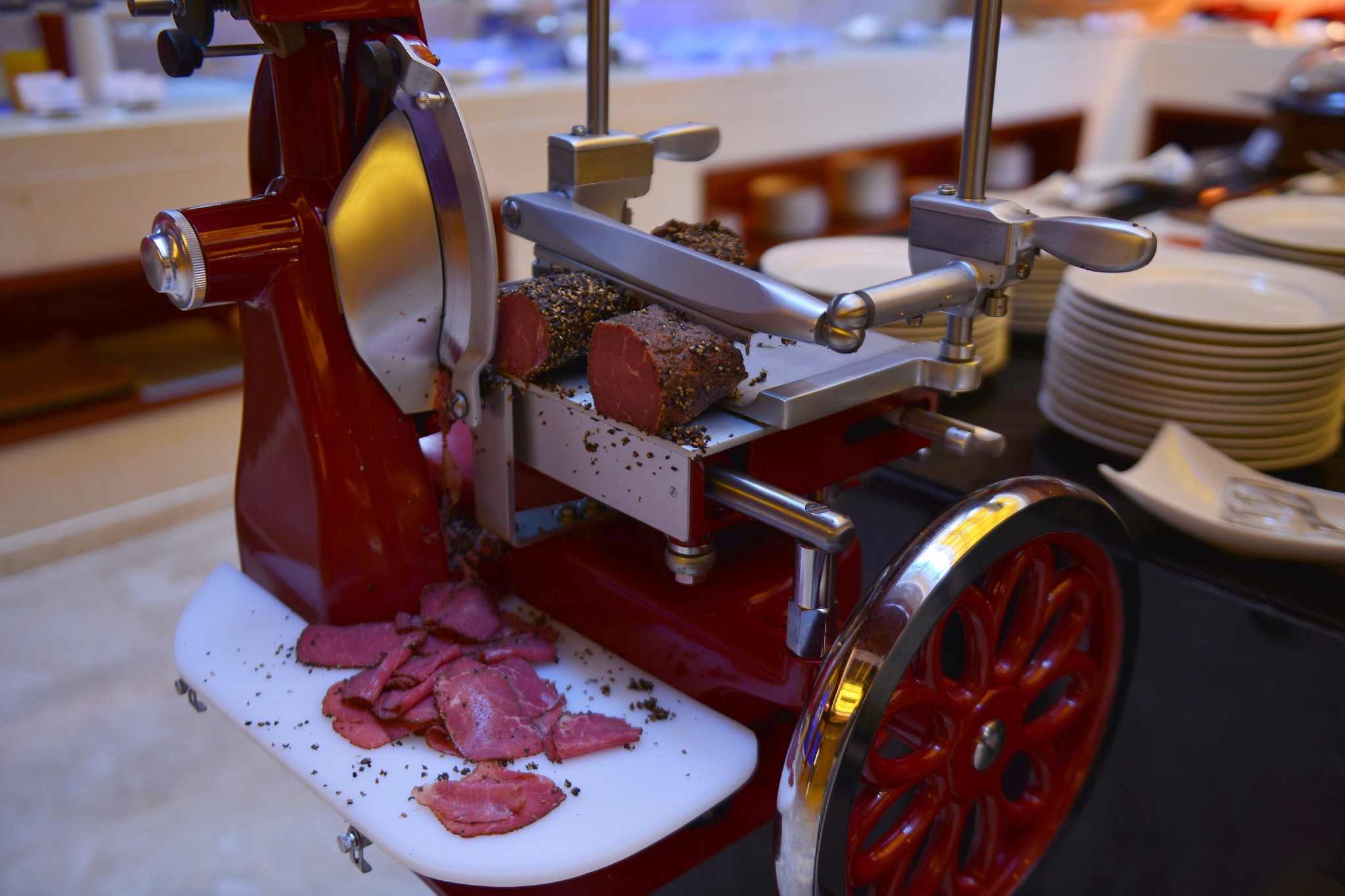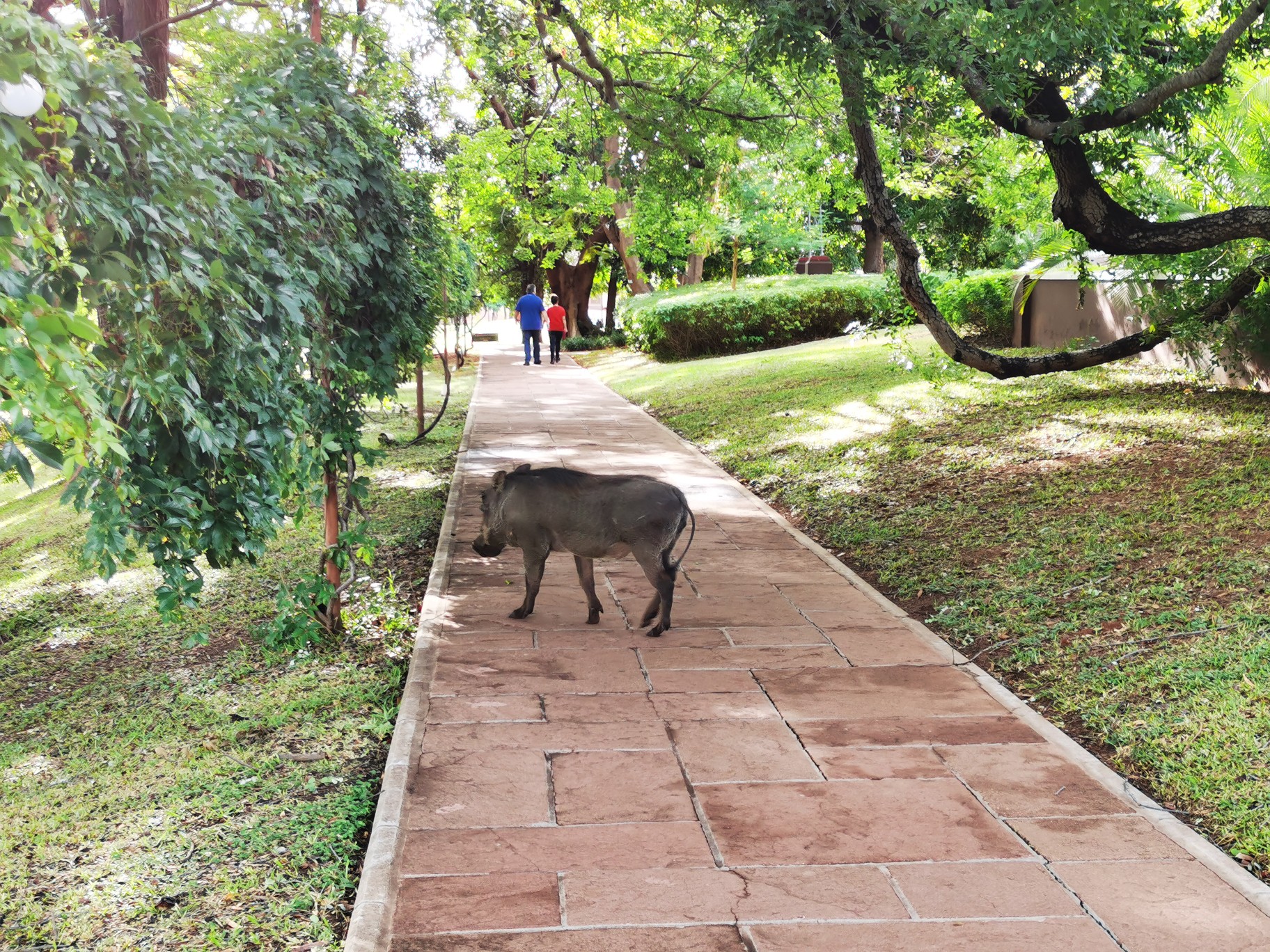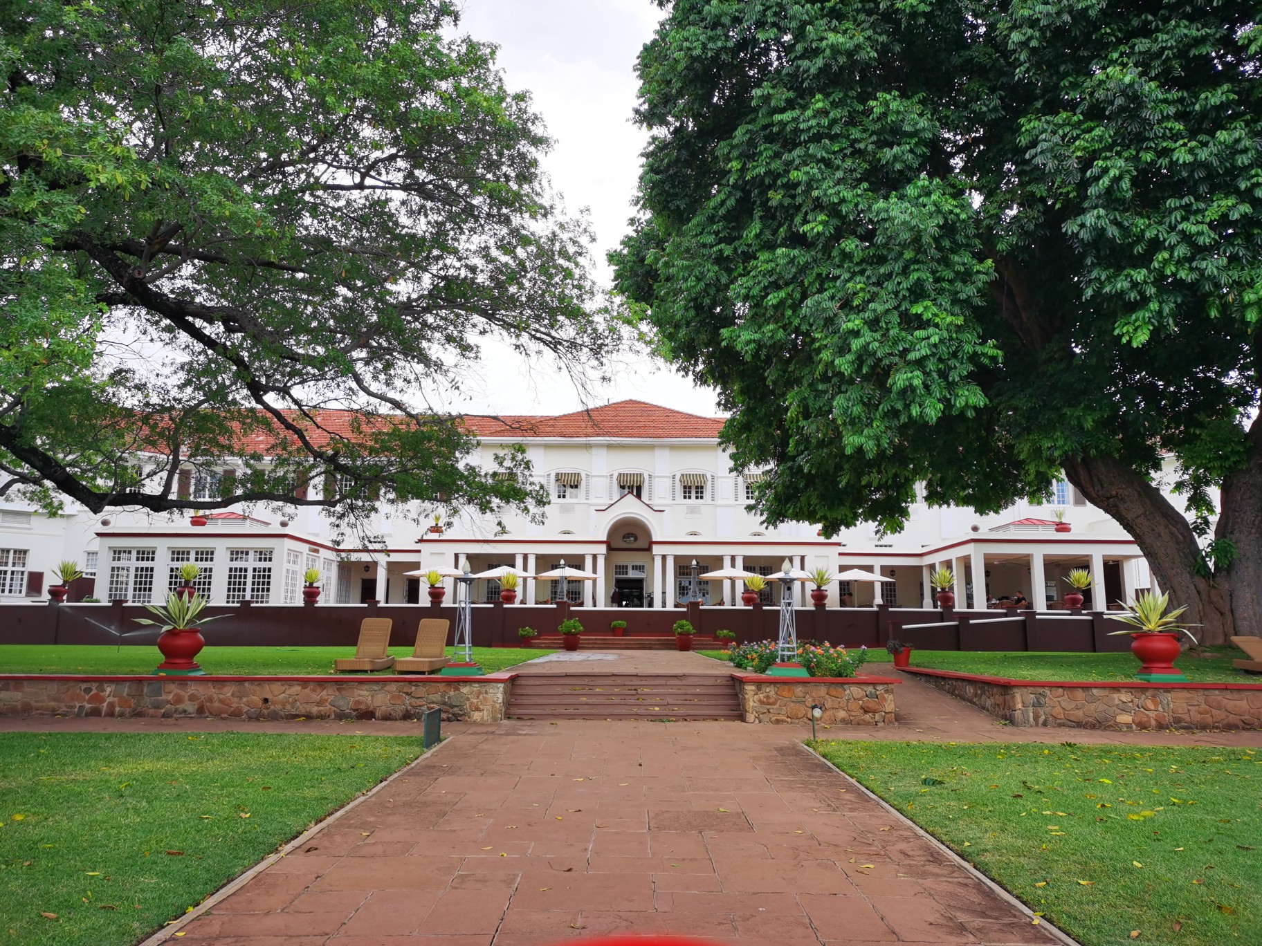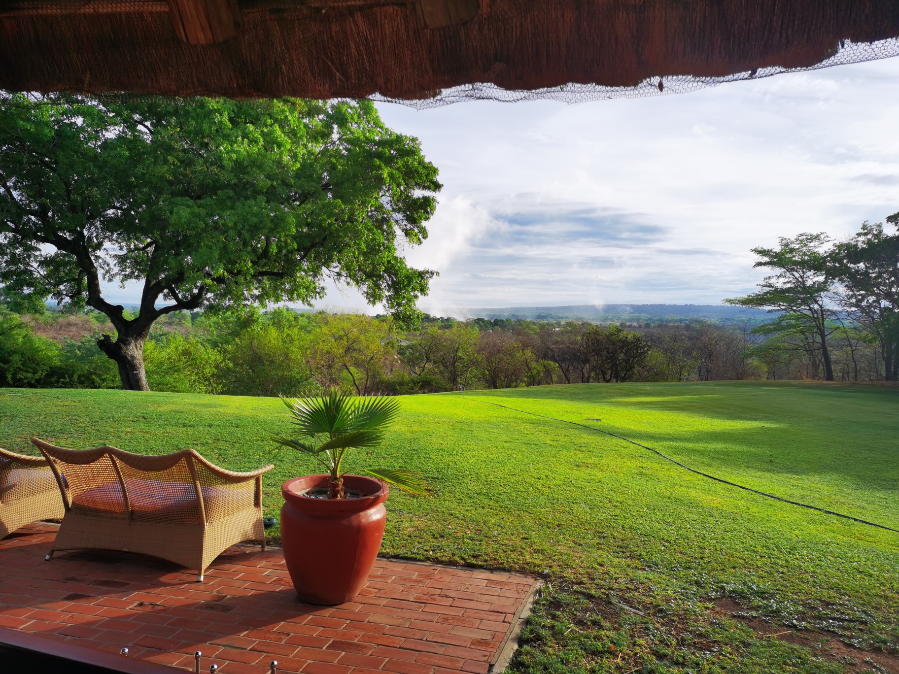 早餐厅的位置非常好,能够看见远处瀑布的雾气和赞比亚大桥。同时秞猪和猴子也在院子里随意走动,不怕人。酒店一共有三个餐厅,西餐厅是需要着正装进入。位于酒店中部的餐厅是一个办户外的形式,晚餐也有烛光晚餐。