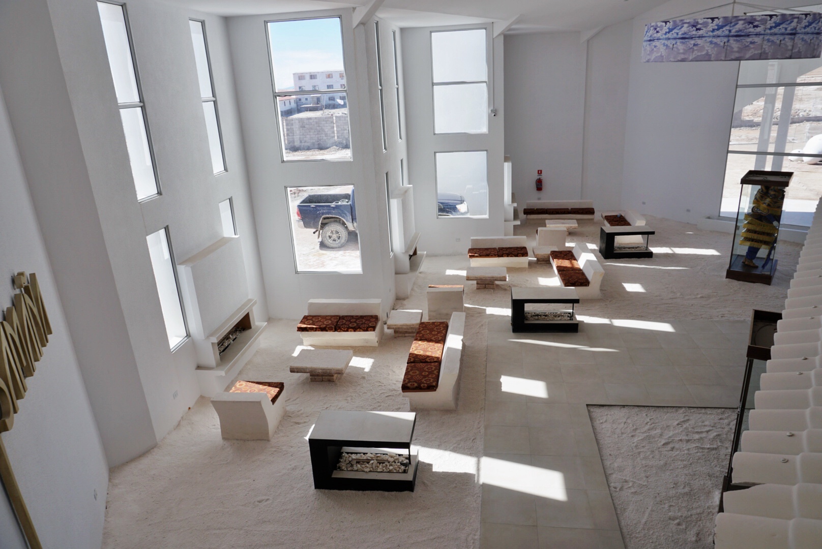 整装建筑都由盐砖建造,大堂的桌椅摆设、房内床头的壁饰,甚至是地面上都是盐做的。 基础设施因为都是用盐制造的,所以相对不算华丽,但是就是因为整座酒店充斥着各种盐,所以让我义无反顾的选了她。