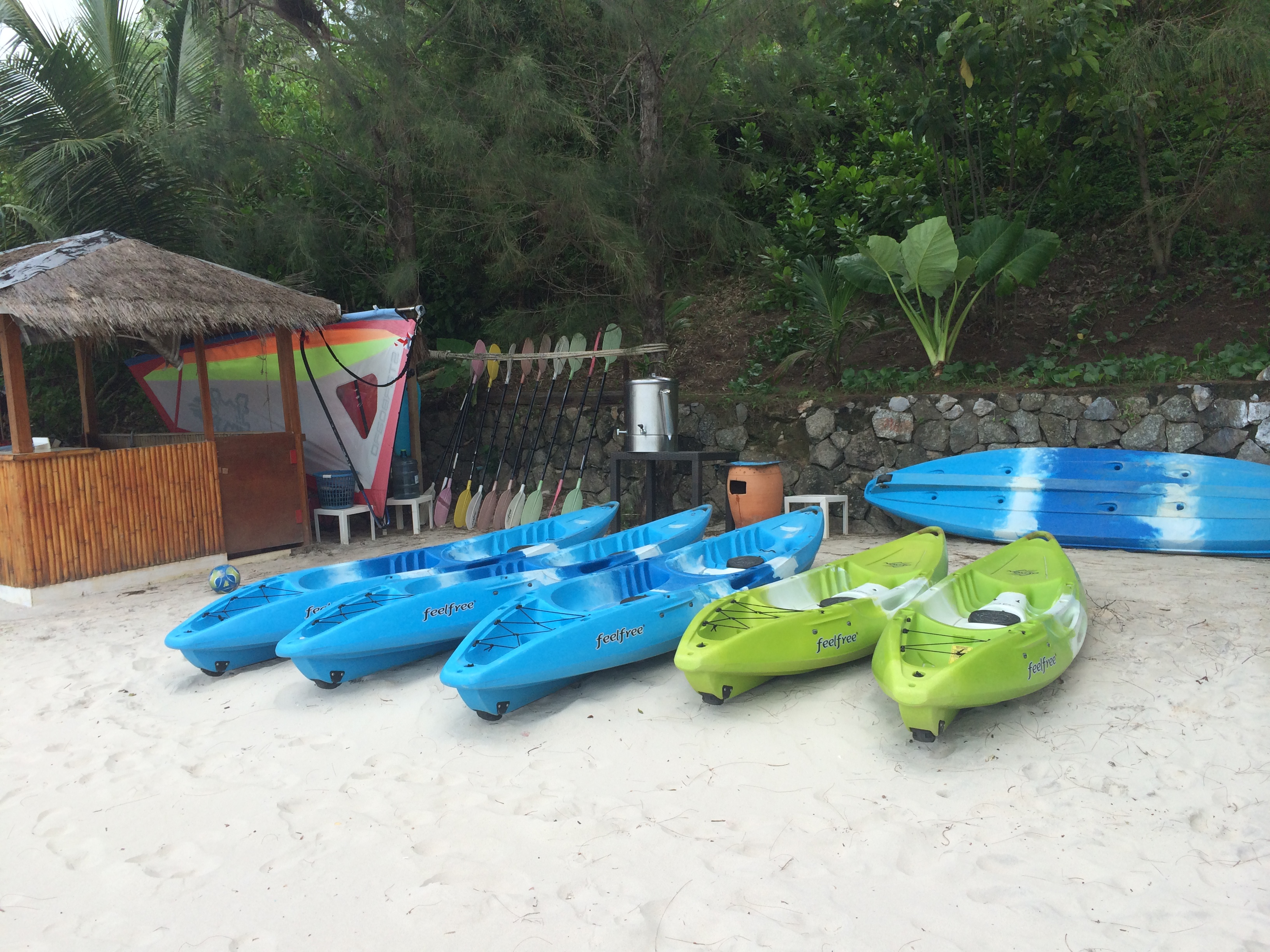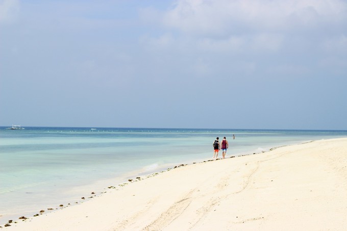 走进海滩,即使下雨,海水也是清澈见底的浅蓝和深蓝,浅蓝色的地方海水只到大腿附近,可以向前走很长一段,踩着的沙也不会往下陷,如果会游泳,该是多么美好。