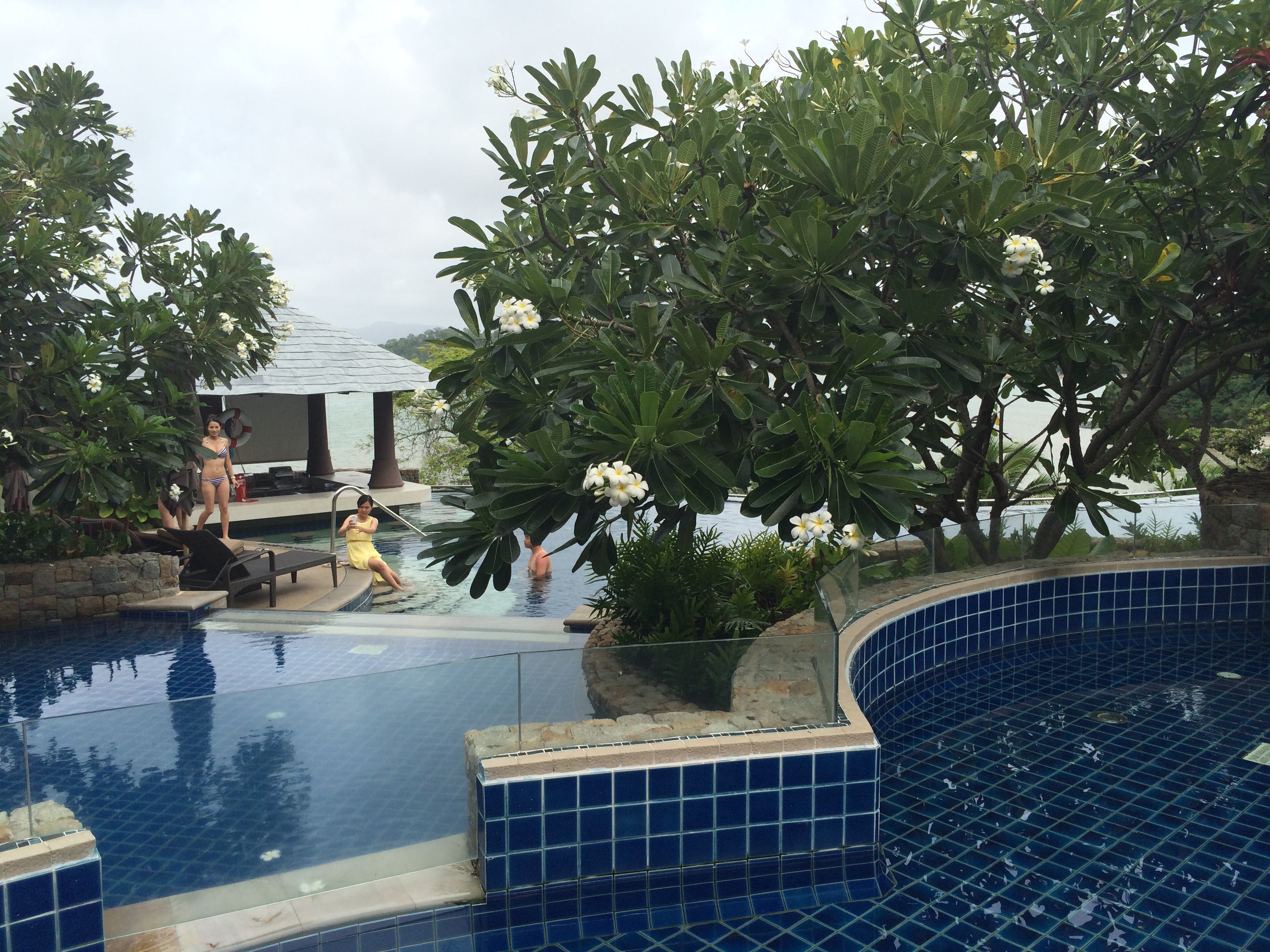 无边泳池下面有个温泉池,MMP晚上的温度很低,泡温泉让身体很暖和、舒服。