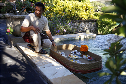 经管家介绍,每天可以享受全天五次不同时间段的免费餐食,还有俱乐部宾客专用的活动酒廊以及美味的下午茶。如果只是想要平淡地感受海边宜人的休闲时光,在这里入住无疑已经满足了你的一切需求。对啦!入住期间可免费享受一次半小时的巴厘按摩或者日出瑜伽,拥有高尔夫球场、网球场以及别墅图书馆的使用权限。或者在自己的住处享用一份罗曼蒂克的漂浮早午餐和烛光晚宴。