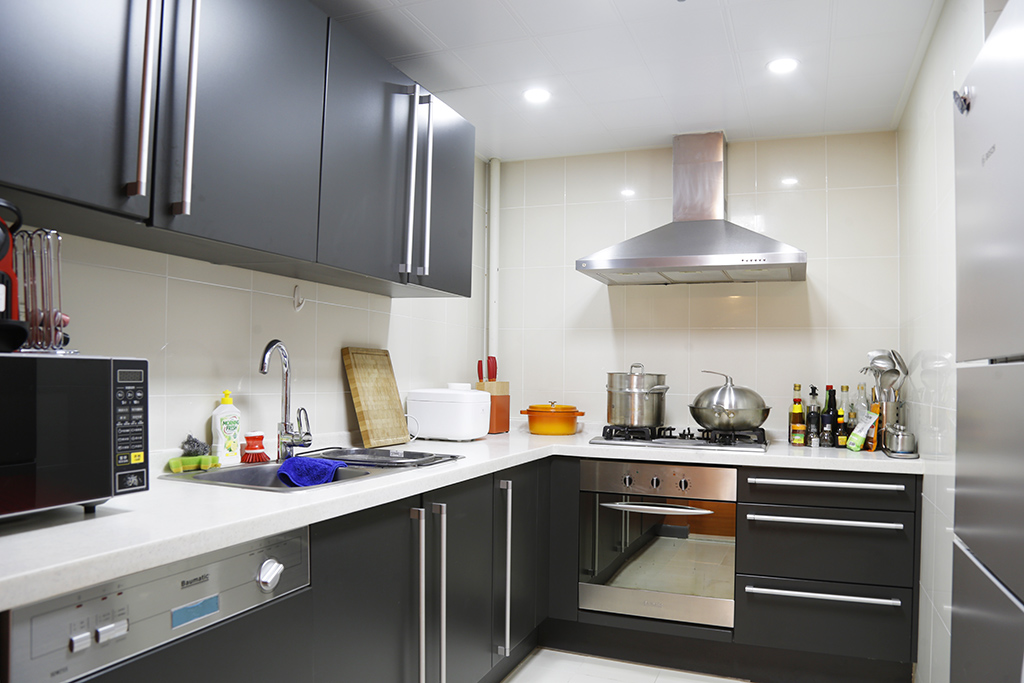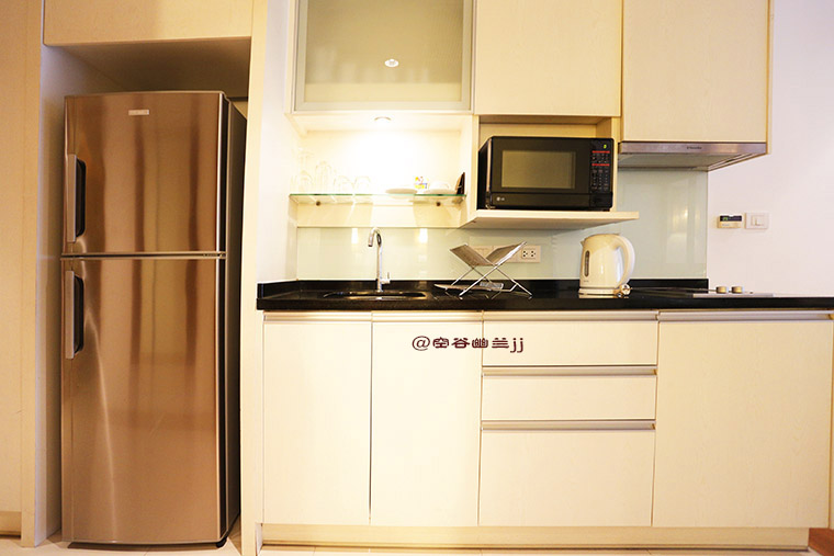 客厅和卧室通过中间的走道连接,还备有小型厨房,浴室也很大。
