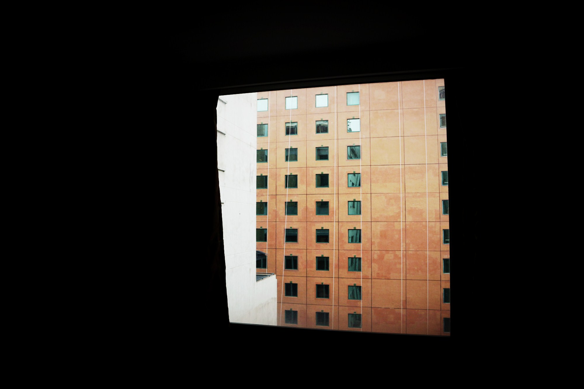 透过窗户,可以看到对面依然有很多高层酒店在其左右。所以,整体的配套有保证,入住的氛围也比较好,尽管靠近商业区和地铁站,但是一点都不嘈杂。