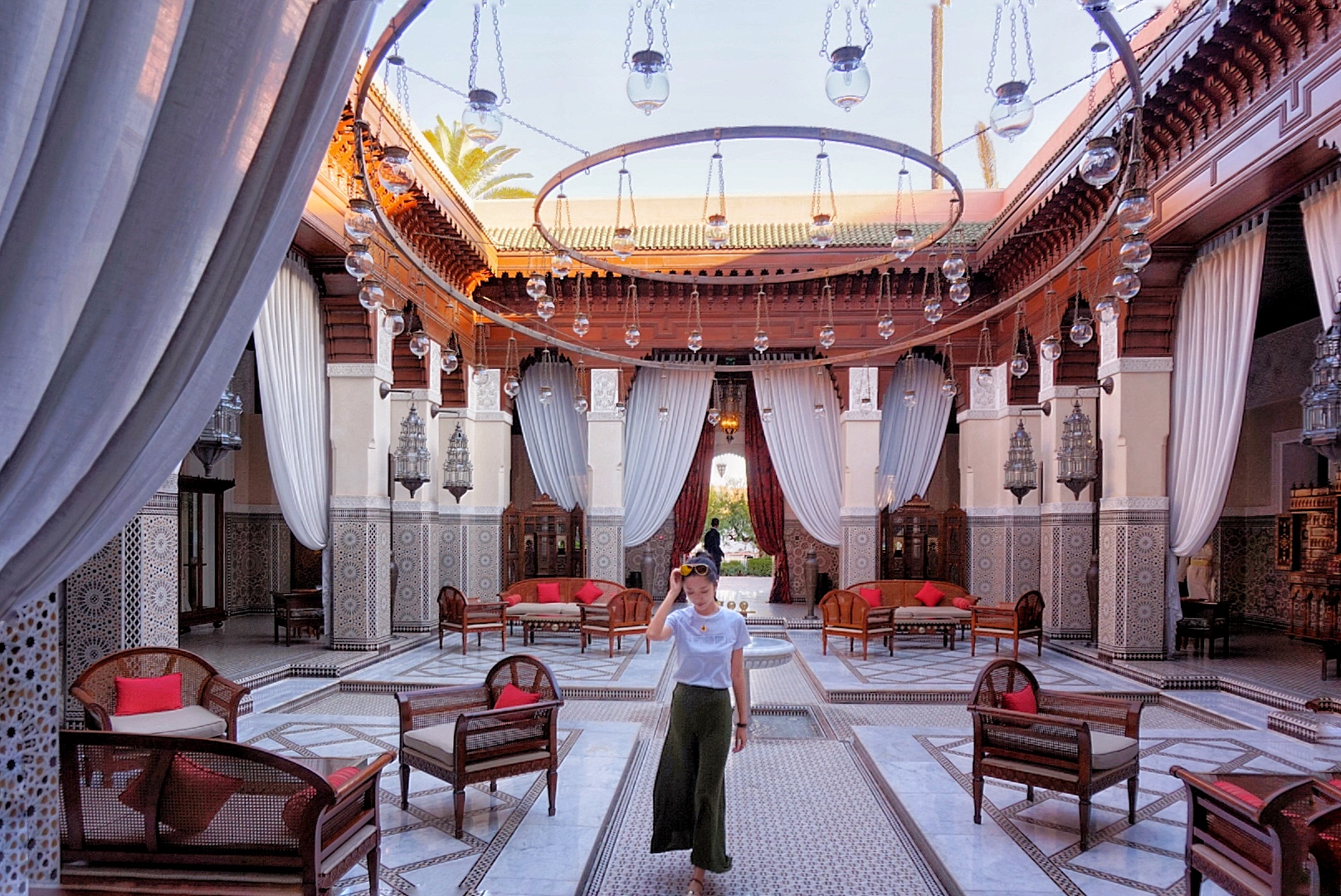海外住过最厉害的应该是这家,位于摩洛哥马拉喀什, 贵有贵的道理,因为你承包的是这一整栋,没来之前愣是不知道为什么有175平,来了才知道,一共三层楼。
