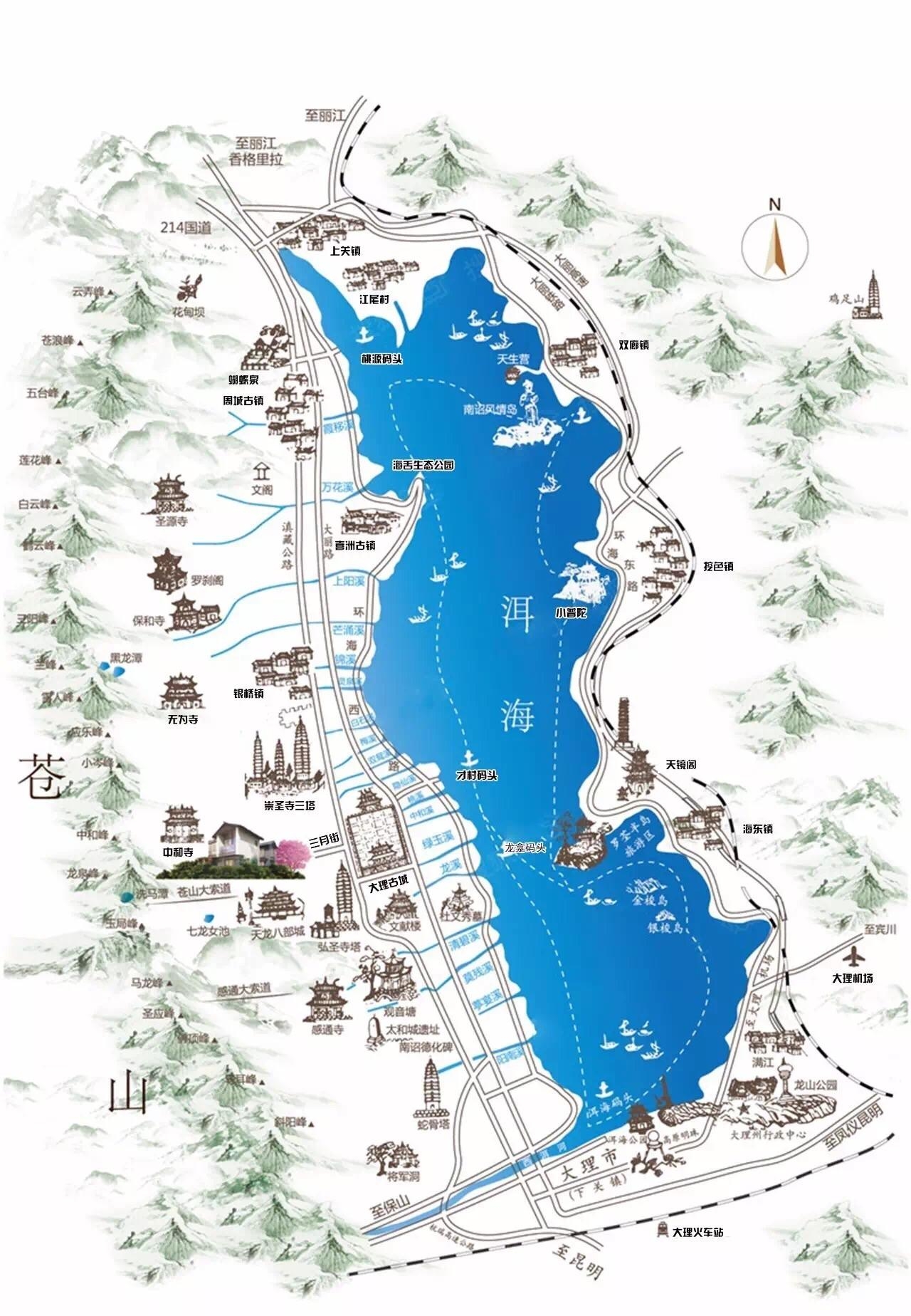 城市的地理情况,我根本不知道古城是在洱 海西 方向,我一直以为古城在洱海的底部(南向),所以第一天行程安排有误,错过了海舌公园,因为
