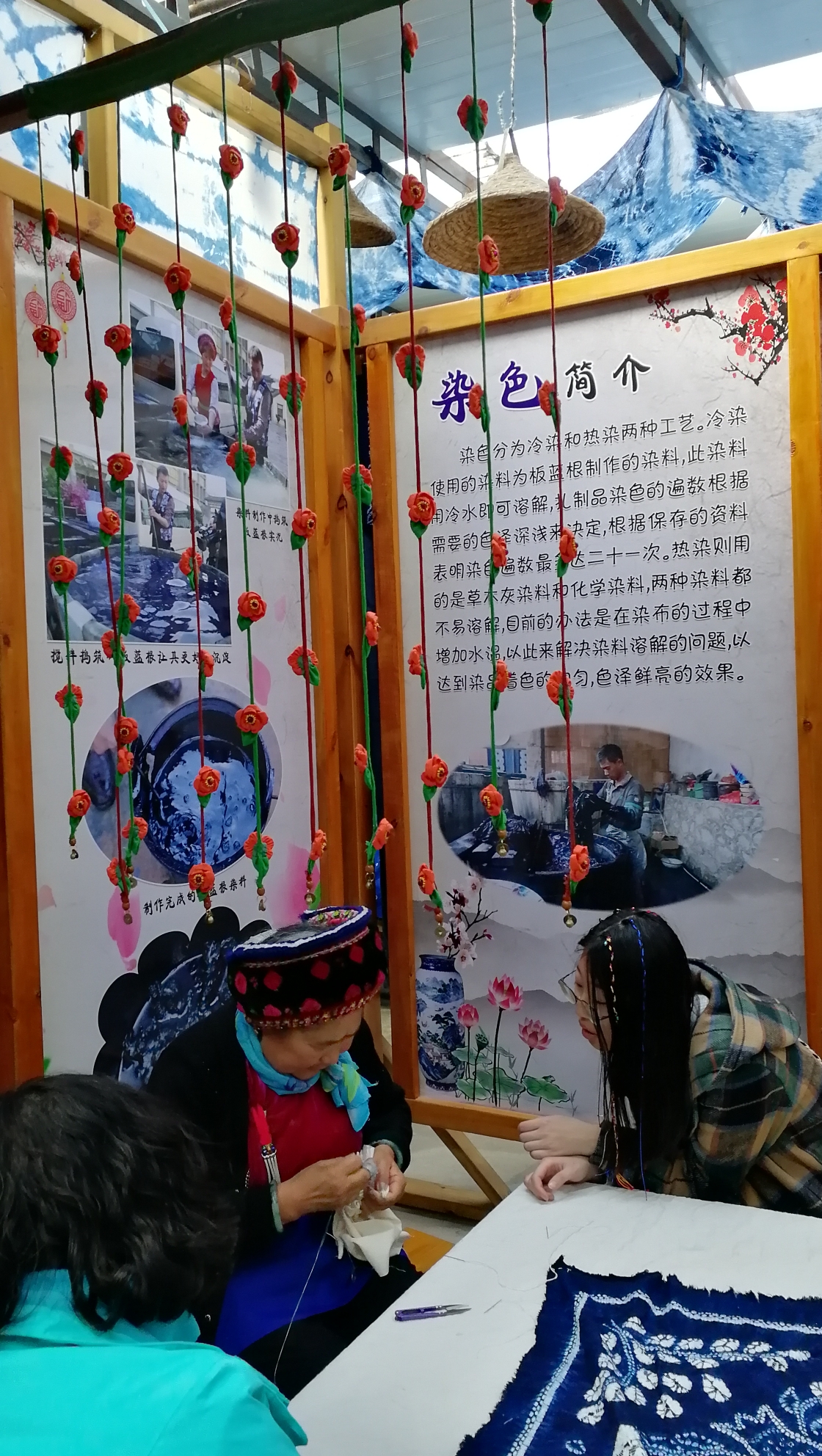 周城村周城村周城扎染体验50元一块,看着老人家扎花、脱浆、染色、脱干、拆花,让孩子体验了扎染过程,小家伙说妈妈原来我们衣服的颜色是这样染出来的。体验的是蓝色,板蓝根植物做的染料,这个是最基础的,其他颜色肯定就复杂了。一块床单1200,卖的就是工艺品技术了。