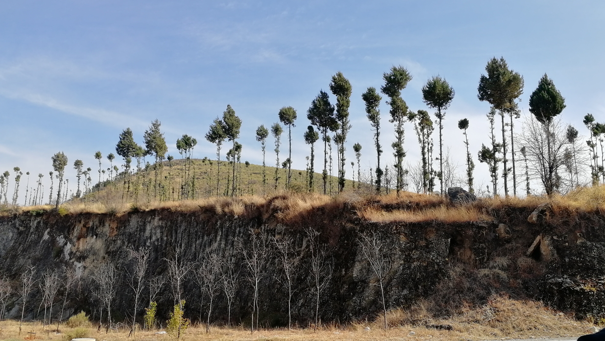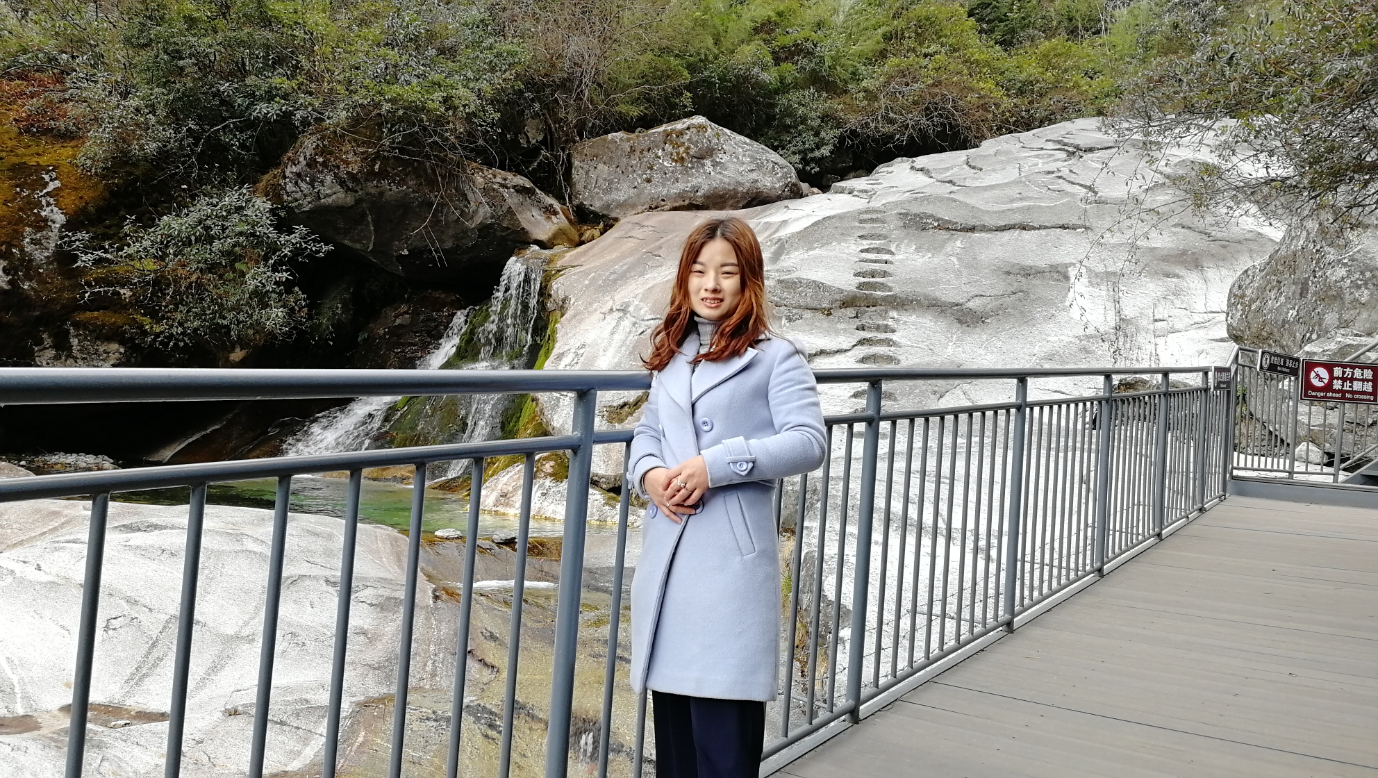 苍山玉带路就是这种路,途中还有一个很有意思的石头刻字“一回头”,照片很多在相机里,没办法分享。途中还可能有落石,有路标标识“小心落石 快速通过”,粑粑研究了一下,确实那地段的地质岩石很容易脱落了。