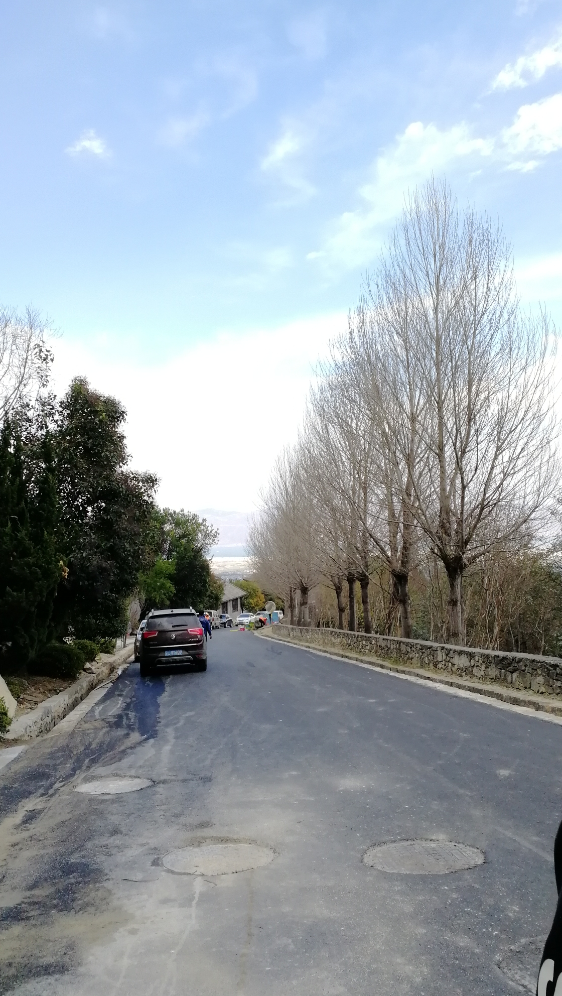 孩子粑粑喜欢看武侠小说,对《天龙八部》更是有情怀,一直给我讲珍珑棋局的故事,说这个介绍不对,具体故事原型是什么他说了我也记不住,就知道原来是围棋现在改成象棋。清碧溪峡谷很高的感觉,我们也是远眺拍照,没有爬上去,就沿着玉带路看风景拍照,玉带路在苍山半山腰,大概18公里,苍山19峰18溪沿路都可以看看,俯视山下头有点眩晕,想想 广州 白云山才三百多米高。我和粑粑都喜欢自然风光,山上的片岩、叠岩、松树等等,还可以看到整个