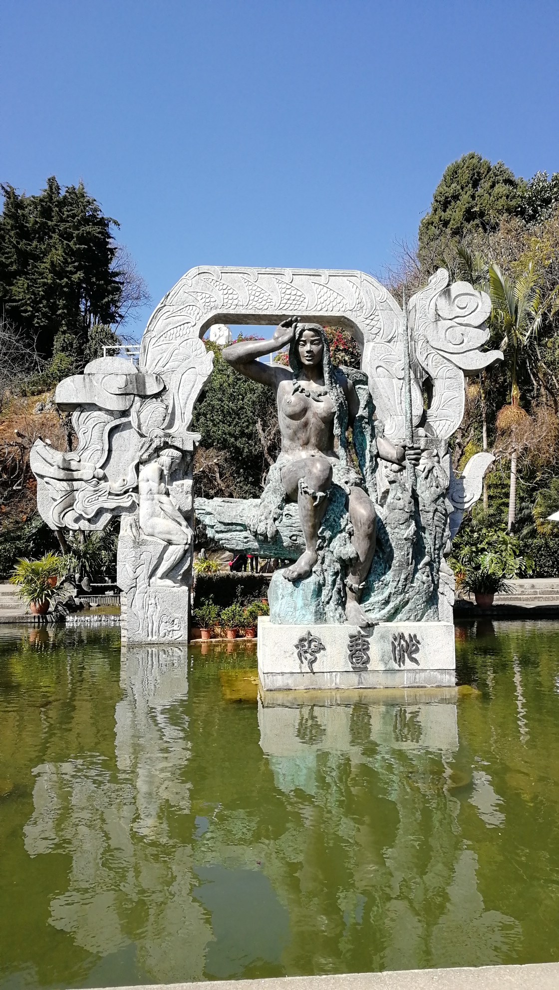 苍山在这里就可以凭索道的票坐免费的轨道车爬坡上洗马潭索道。粑粑在入口排队,我说我看看 九龙 女池,没想到那么高,爬到二龙池我都有点喘了,一问还有五龙,时间关系,担心孩子,只能放弃。下图是我在二龙池拍的,顶处的 九龙 女池看游记图片很漂亮,水很清澈,有时间还是值得游览一番。