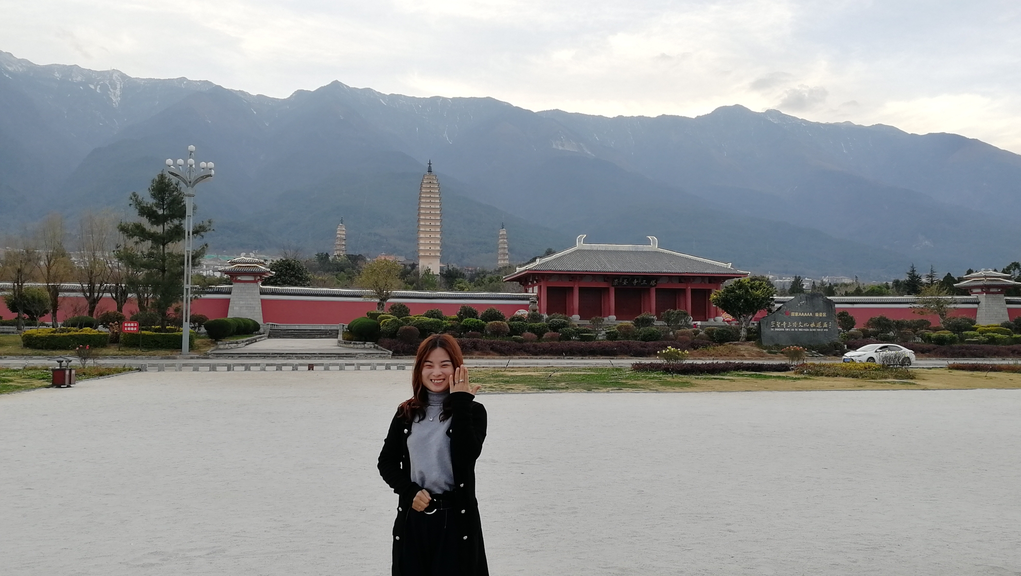 海东镇路过洱海公园,我们没有进去,又经过崇圣寺三塔,后面我在游记看到别人在门口也可以拍到三塔,就停下来拍一张到此一游。这时已经是19点了。