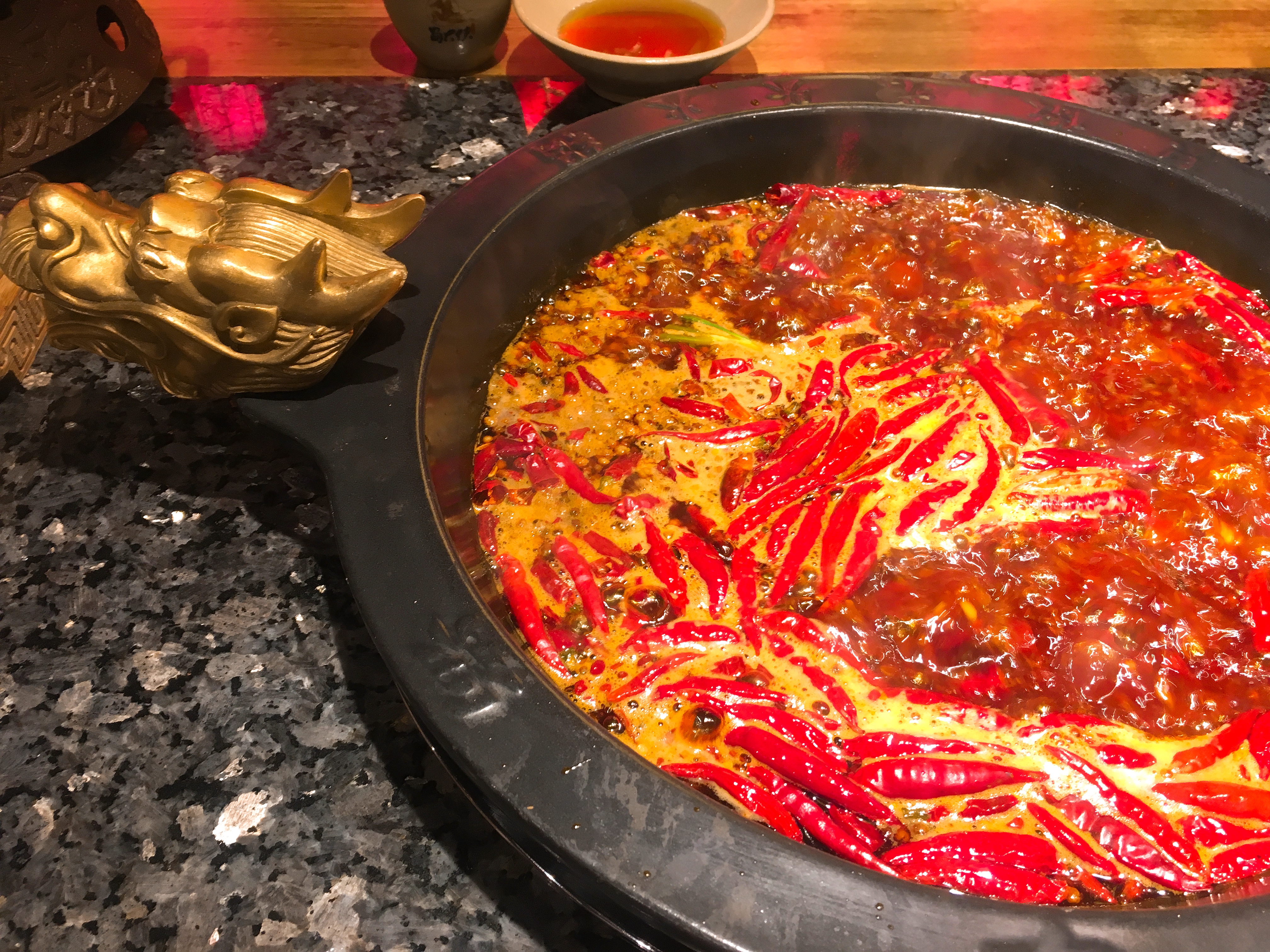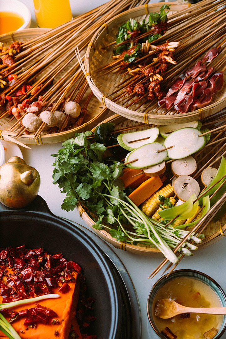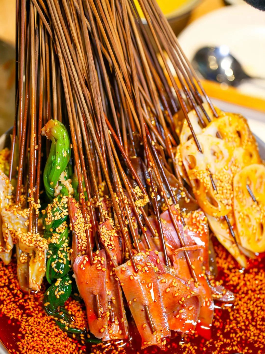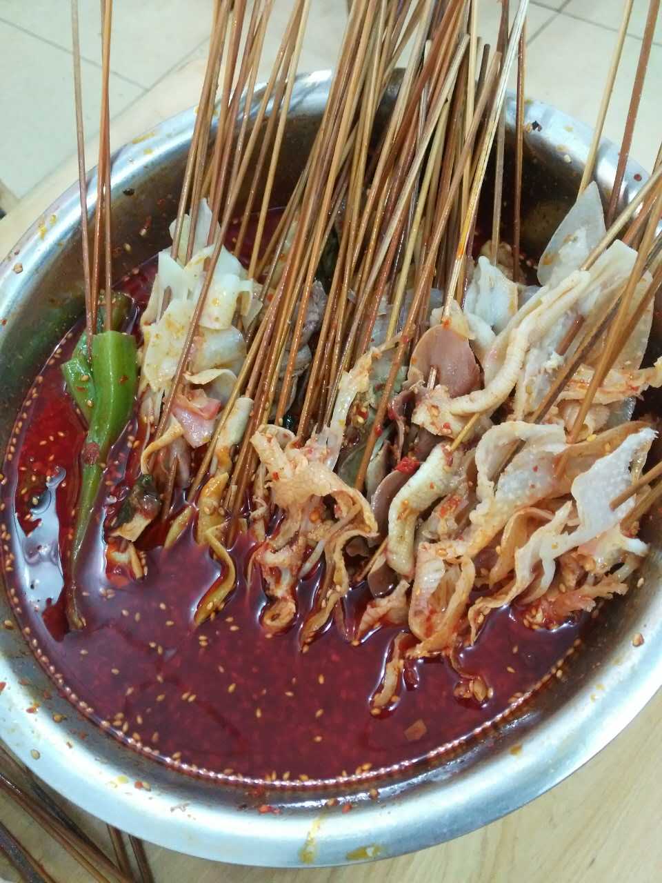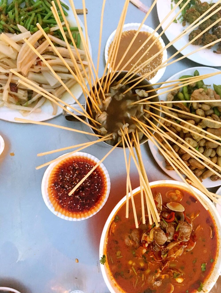 大概是乐山人特别爱吃冷锅串串,于是为了让那些饥不择食的人们马上就有熟食可以吃,他们将煮熟的串串盛放在一个大的圆形物体,让食客们可以随意挑选,坐下就吃,起名叫“钵钵鸡”,如果非要问“钵钵鸡”和串串有什么区别,大概就是钵钵鸡是煮好现成的,连“煮”的时间都不用等了。