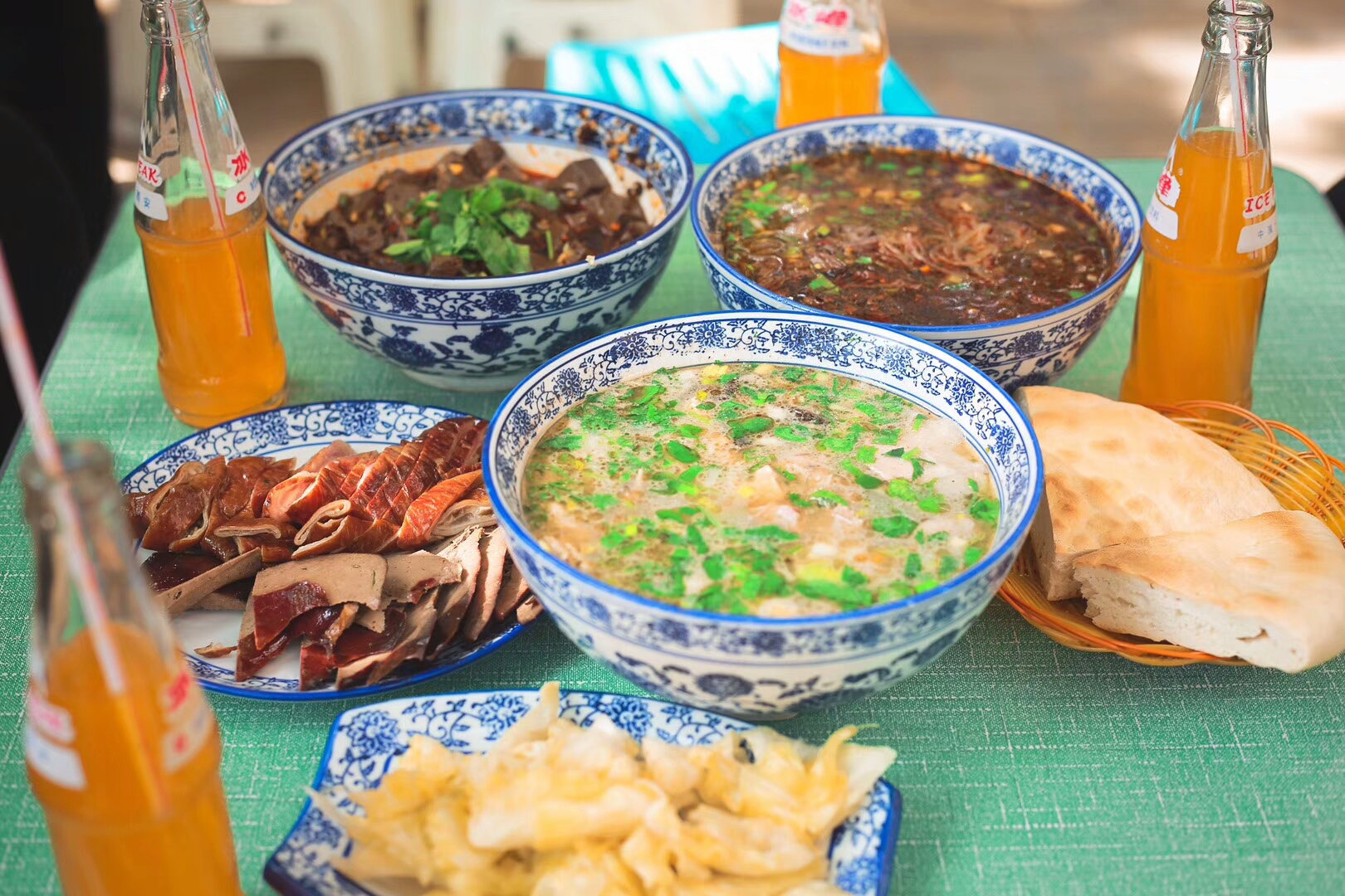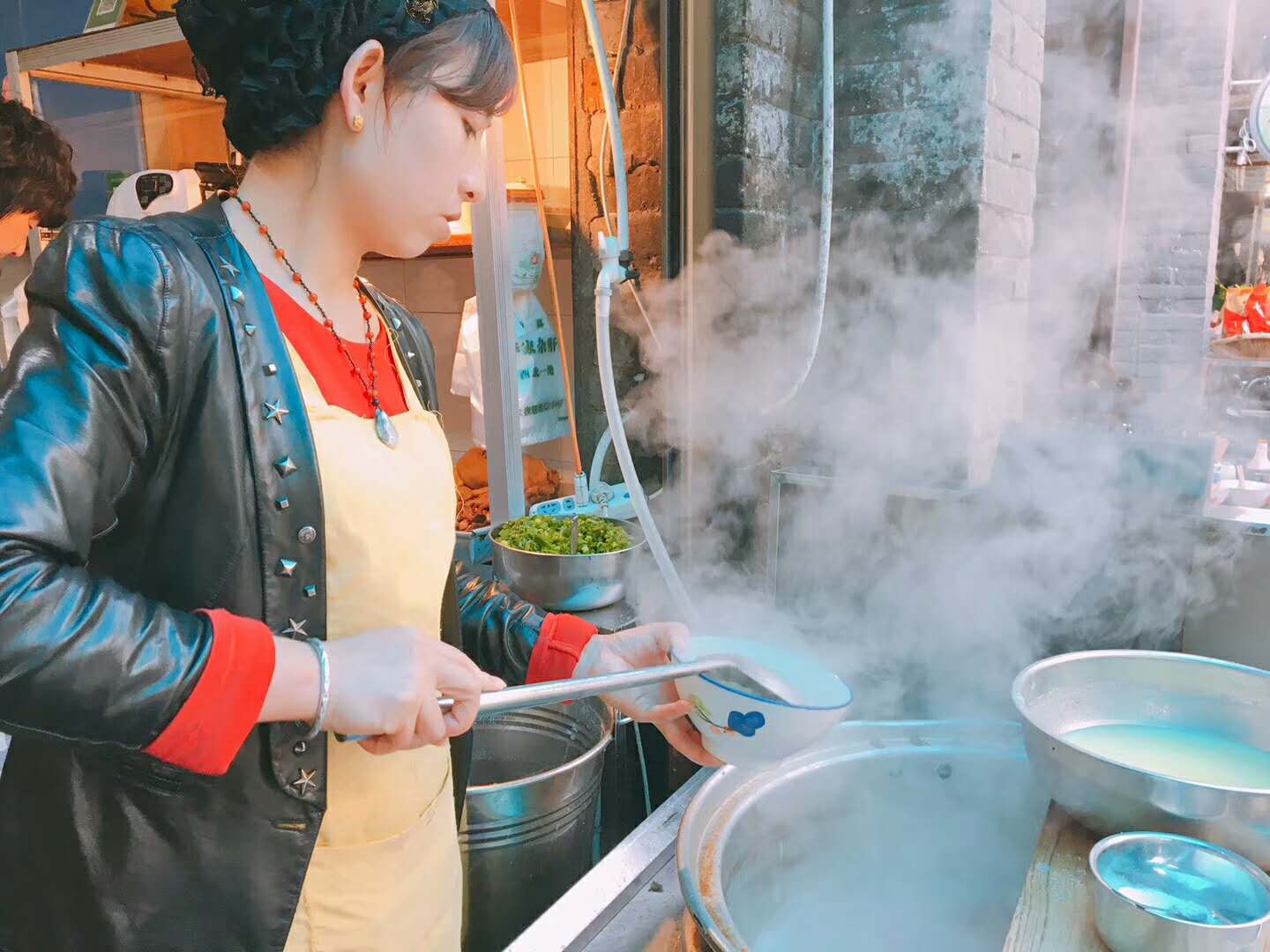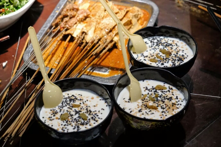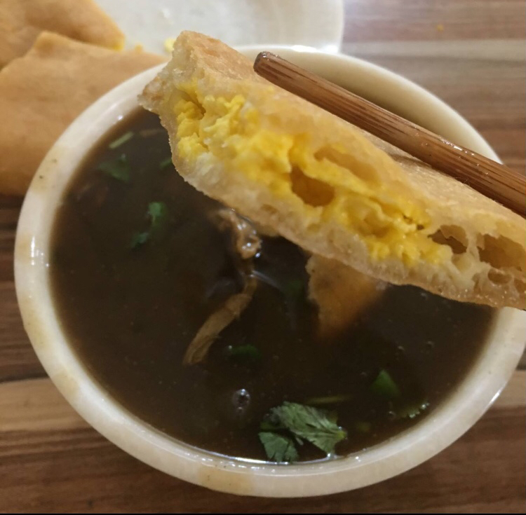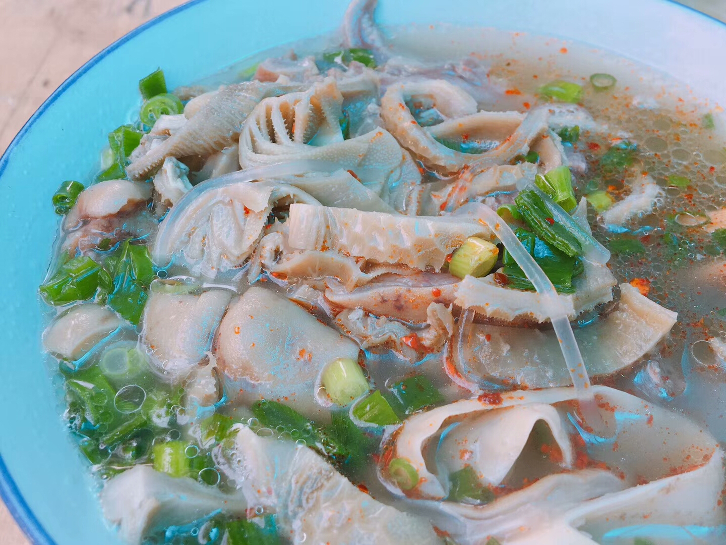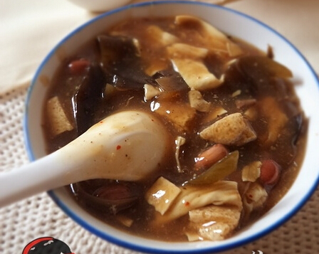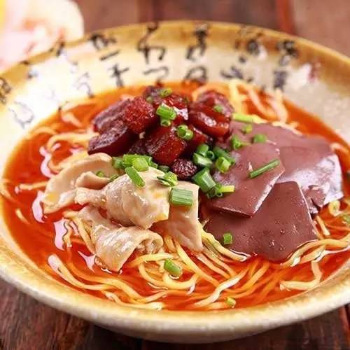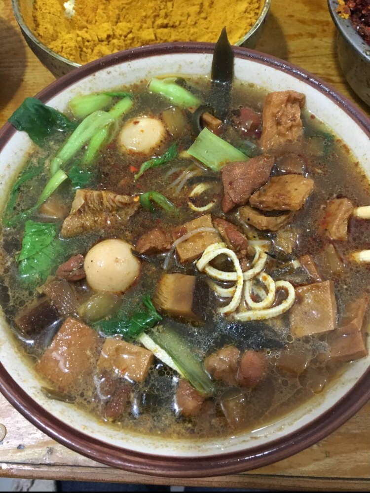主要是以羊肚子、肝子、羊胃、羊心为材料煮汤做成,一般配个月牙饼就着吃,汤头很鲜味道很赞~