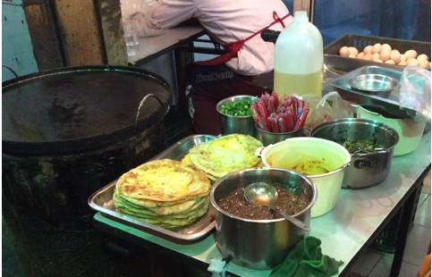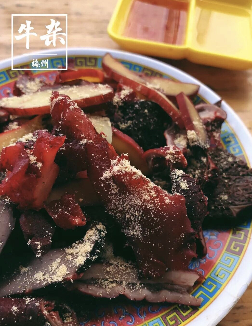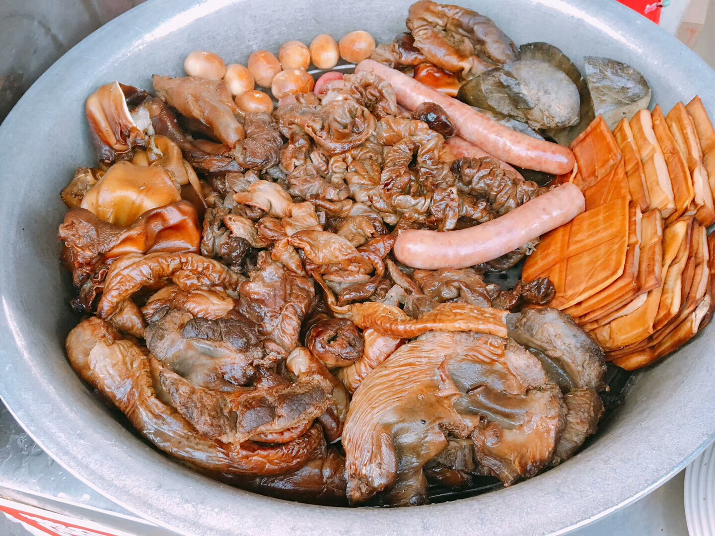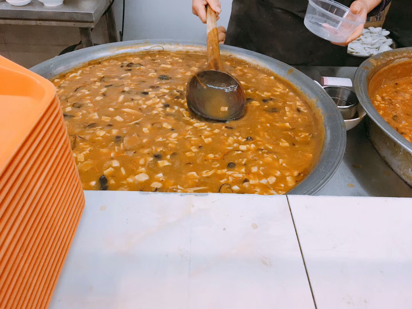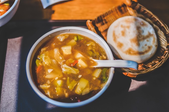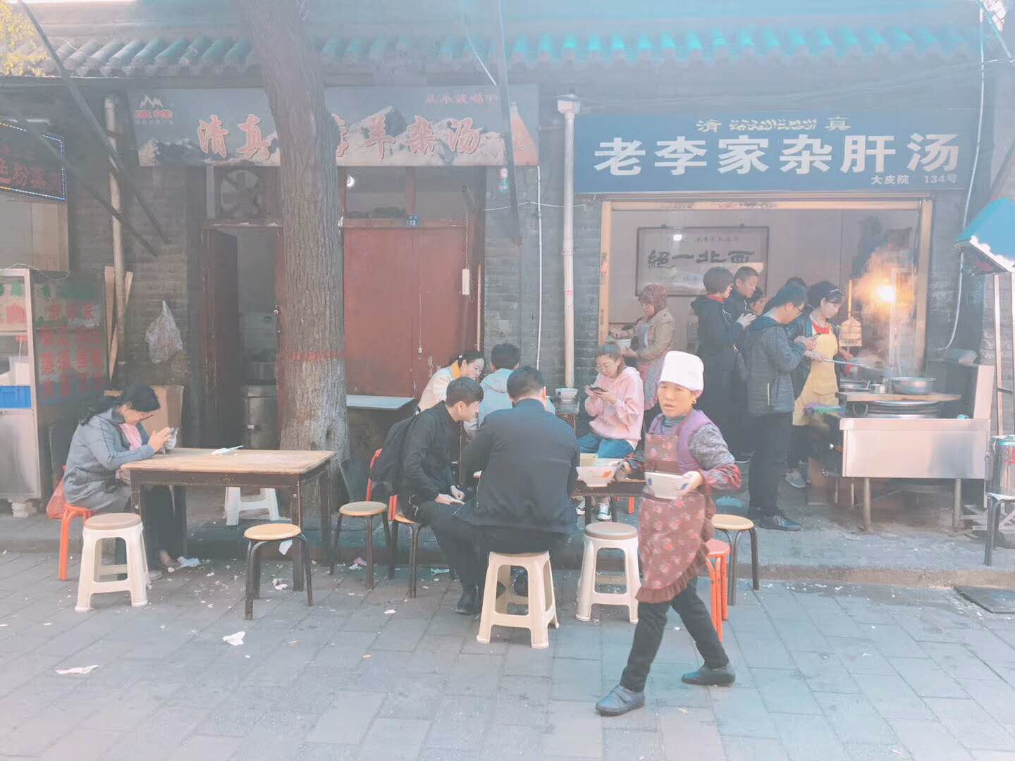 主要是以羊肚子、肝子、羊胃、羊心为材料煮汤做成,一般配个月牙饼就着吃,汤头很鲜味道很赞~