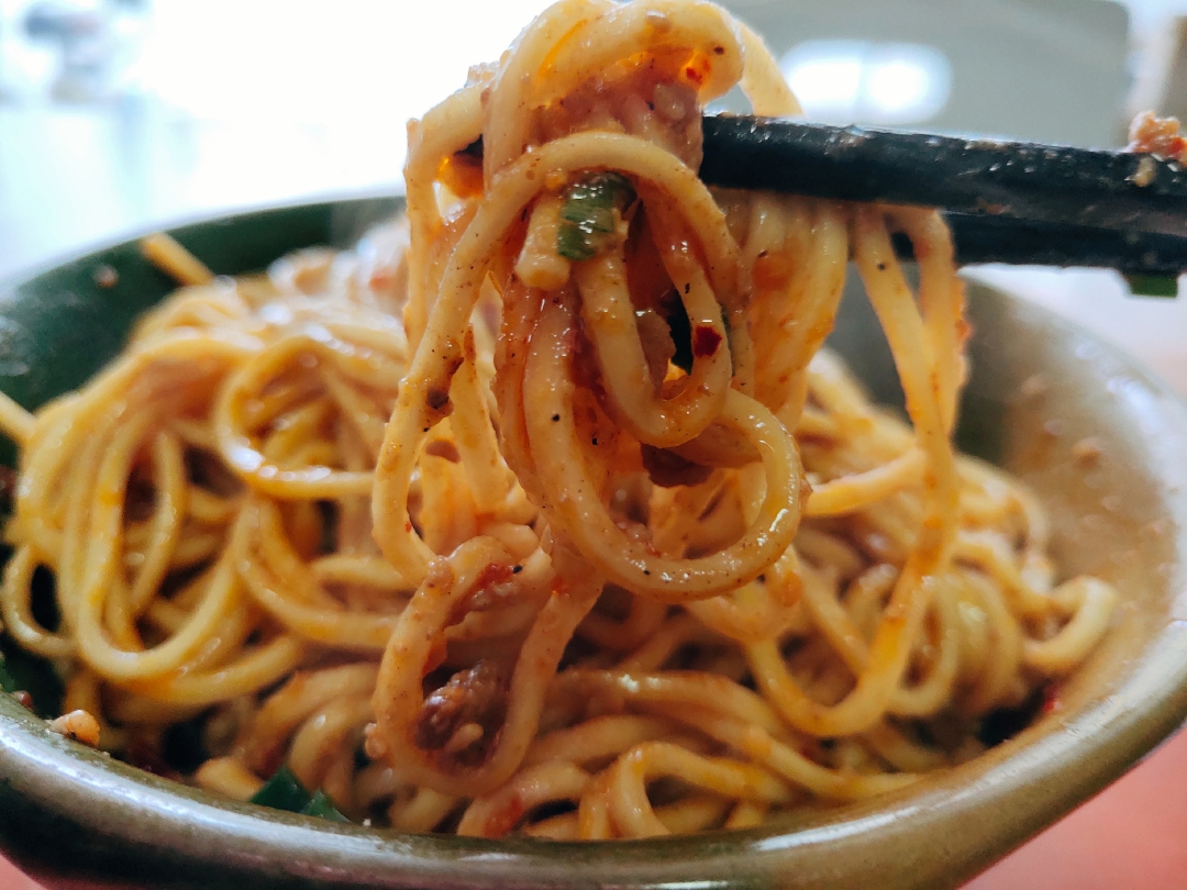在我心中,全世界排名第一好吃的面就是梅州腌面,用猪油炒出来的底料、加上葱花,搅拌均匀油亮亮的面,那一口的感觉是所有米其林都没办法比拟的!