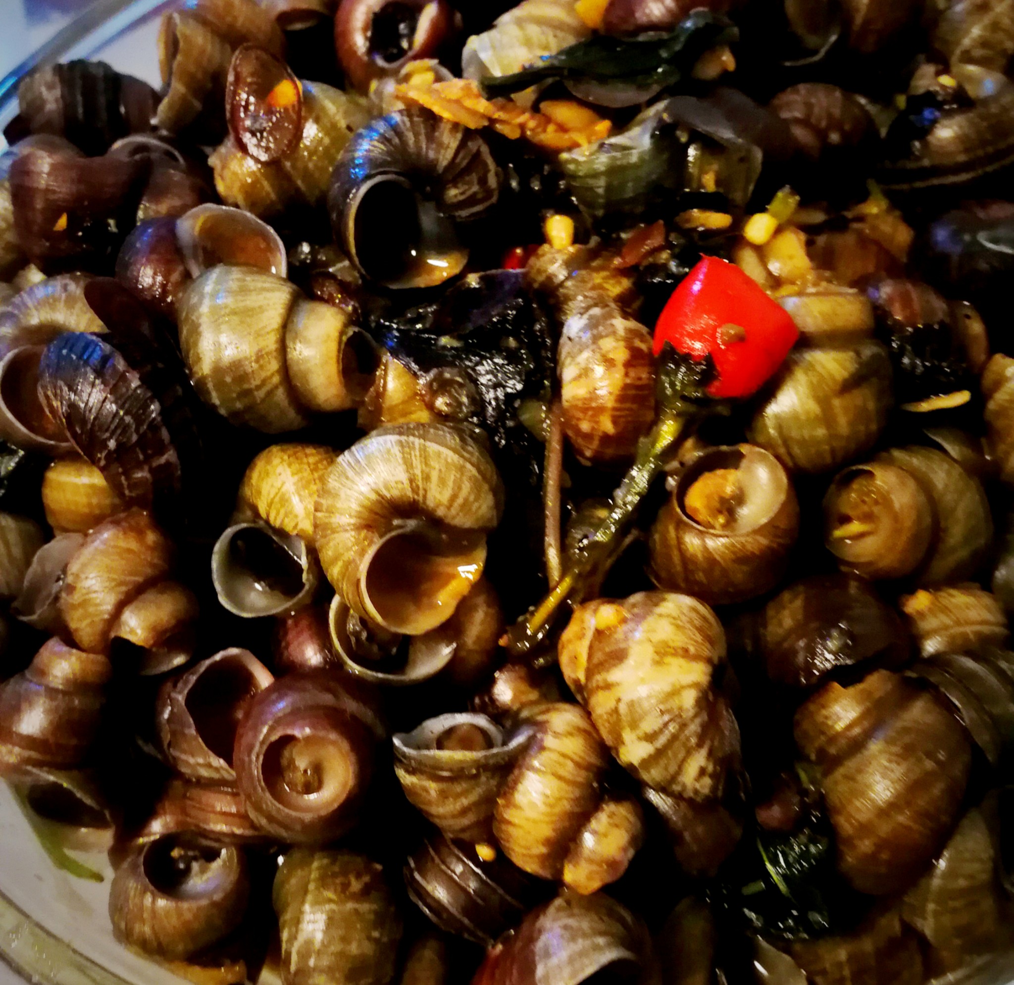 青岛本地小海鲜有蛤蜊、虾虎、八带、笔管鱼、海螺、香螺、海肠子、海蛎子, 我觉着家里做的小海鲜是最美味(光螺类就有好多)