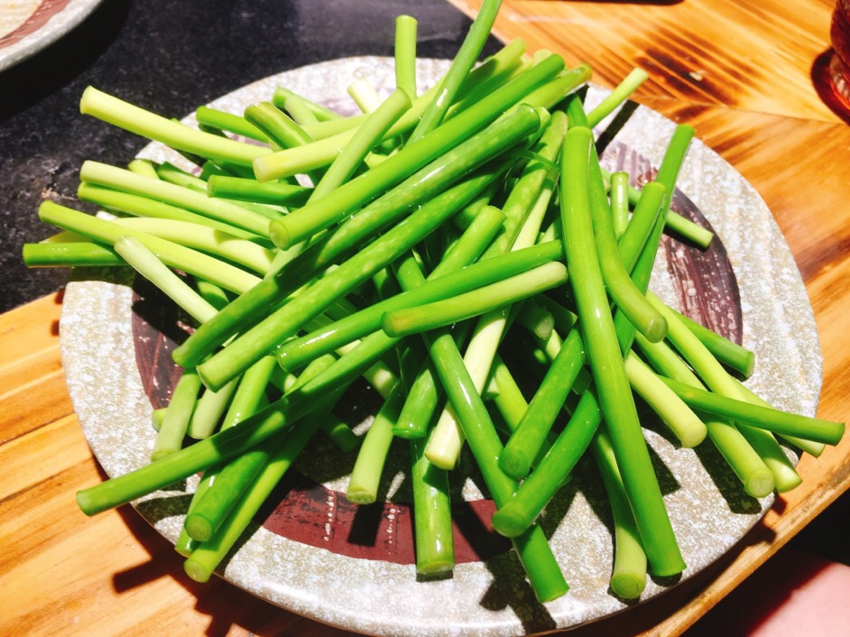 盐水虾、蒜苔炒肉、渔家小炒、干煸鸡心、红烧鲅鱼、小葱蘸酱