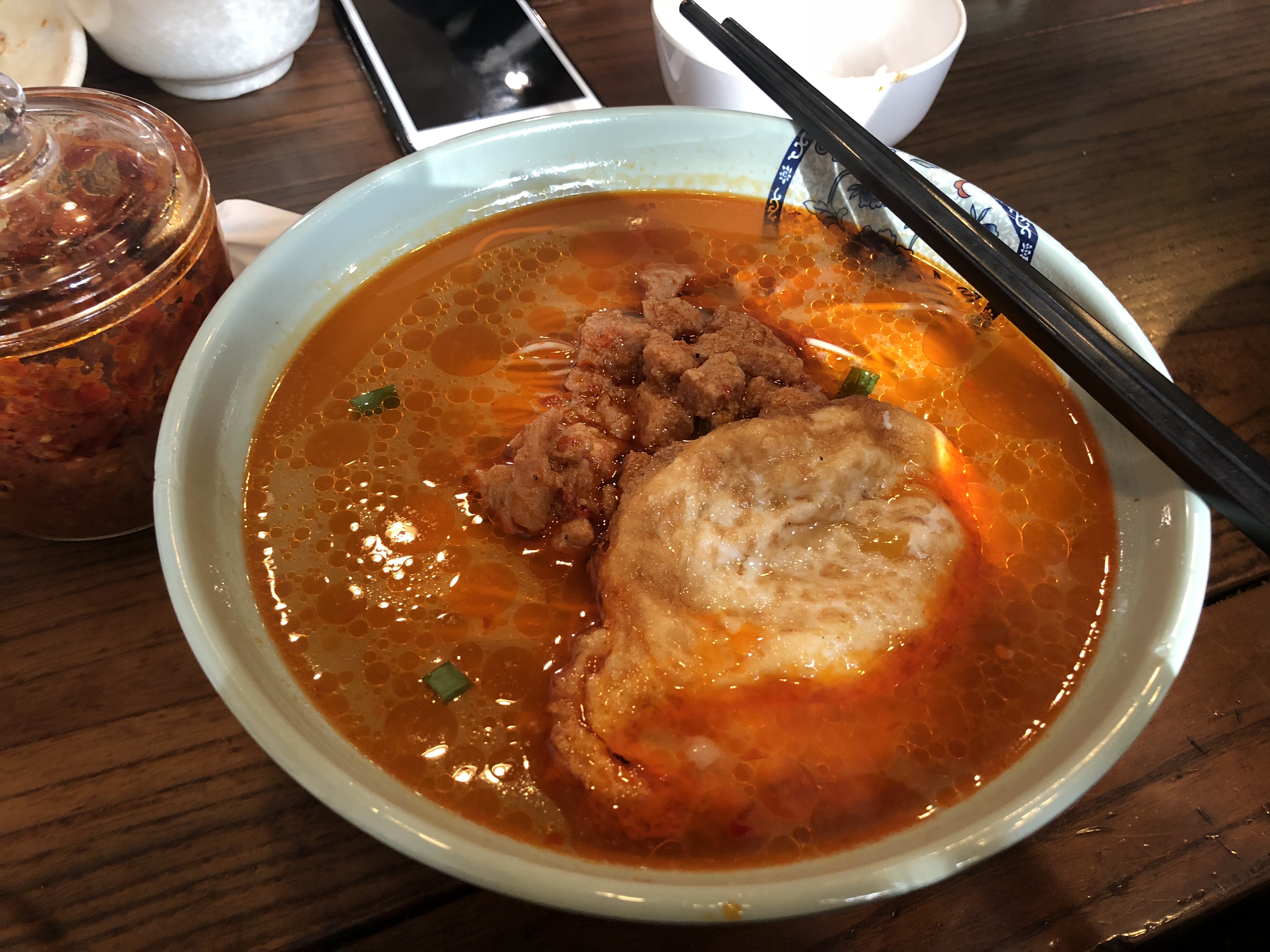 从我有记忆开始这家店就存在了,一对老夫妻自己做汤圆卖的,汤圆长条的是花生的,圆的是芝麻的,小小颗的是没有馅的,糖水很浓吃的时候要冲开水才行,还能加一颗糖水煮蛋。