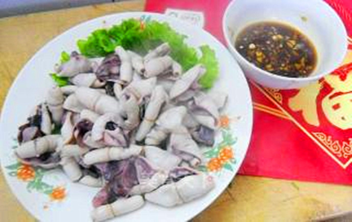花蚬子是大连市面上最常见的海鲜了,可以水煮,可以辣炒,也可以做汤,都很鲜美。如果自己去了市场买回来蚬子,可以放在水里,水中加少许盐,让它吐吐沙。老大连人会知道自己家附近的海鲜市场,哪一家摊贩卖的蚬子,最干净,没有泥沙,这就是平民的生活智慧。