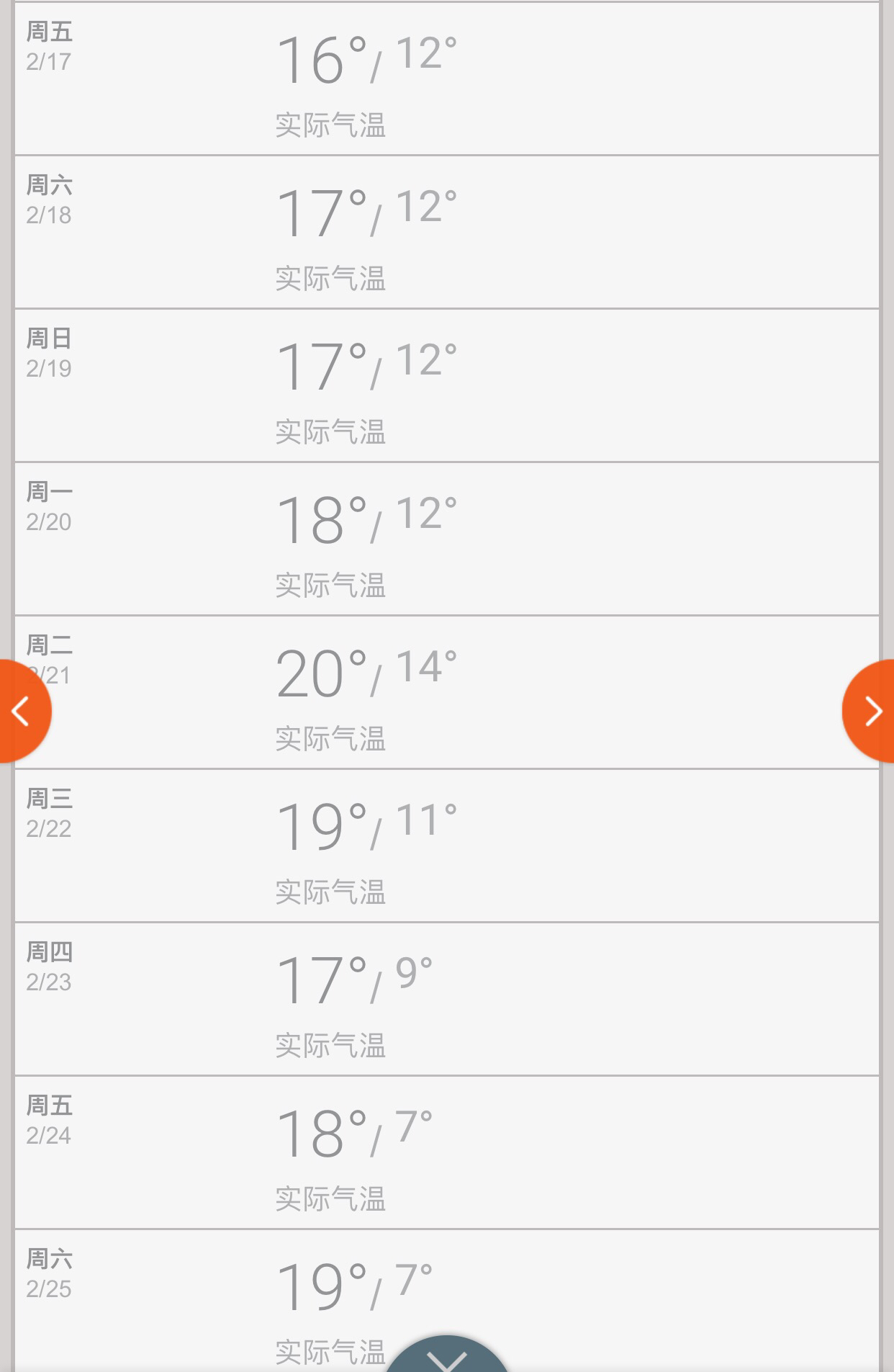 [题主采纳]你好题主,谢邀。今年二月17-28洛杉矶的温度预测如下。还是要带个外套的。太阳晒起来虽然热但总体温度还是在20度以下的,一般穿个小皮衣配短袖什么。========== 如果你觉得TA的回答不错,快来给TA点个赞吧! 你的支持是对作者莫大的鼓励~显示全部