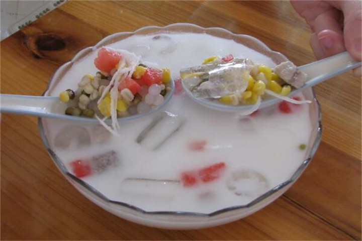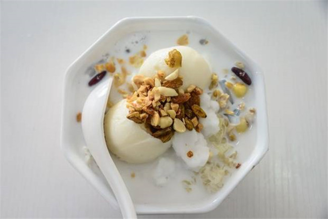 糖老铺糖水清补凉的料跟其他的清补凉有很大的不同,桂圆、莲子、大红豆、绿豆、空心粉、红枣、花生、薏米、荀蒻。入口的感觉特别的清凉,微甜,不腻,让人爱不释口。