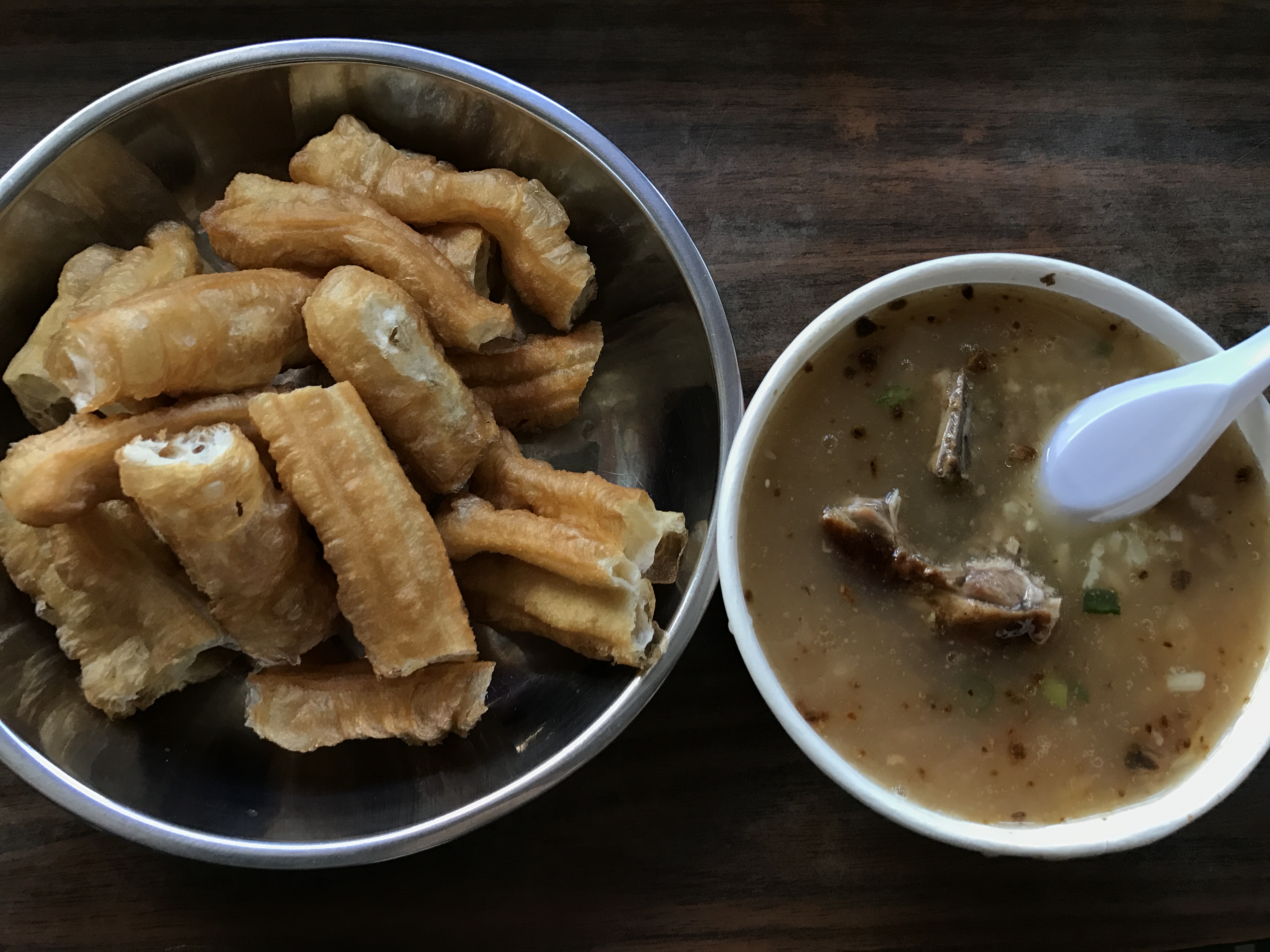 扁食,按照我的习惯,加了点白胡椒粉,汤是大骨汤,很鲜;