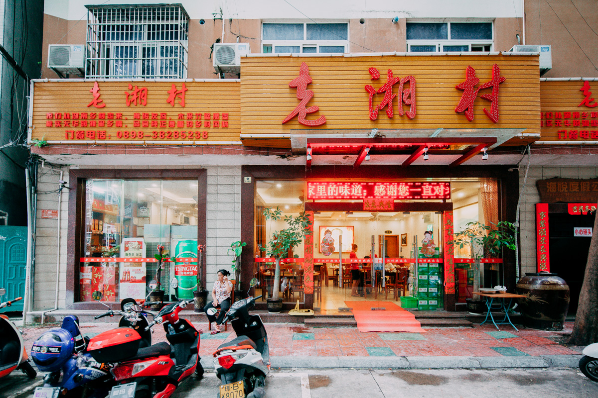 这是一家在 三亚 人气很旺的简餐粉店。一般敢称为“老”的店,都会有些年头,墙上也很应景的贴有老粉记和抱罗粉的壁画。