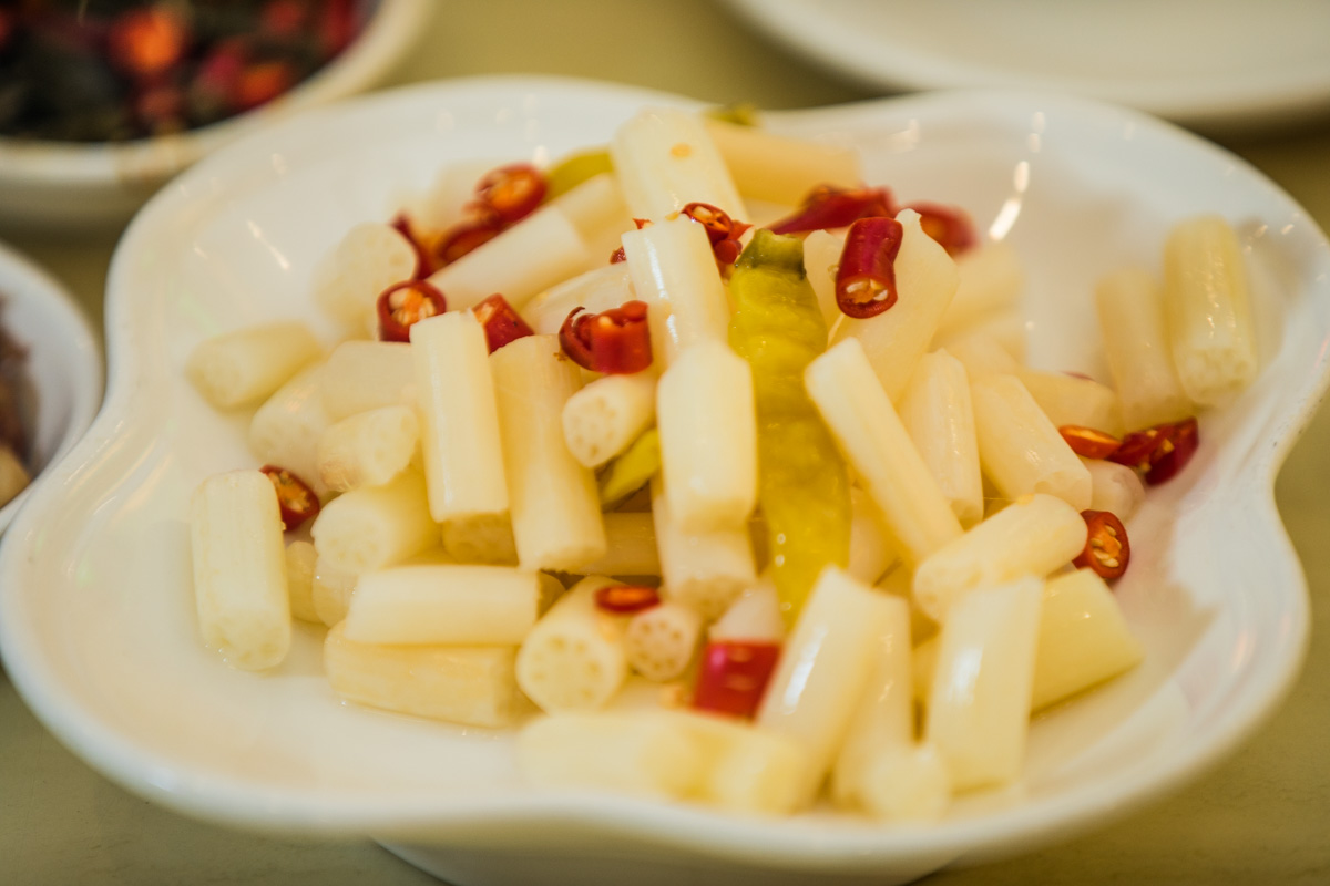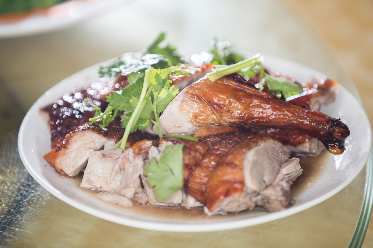 端上来的白切黄流老鸭跟我想象中有很大的不同,老鸭肉纯而不腻,据说所选的鸭子,必须是下过蛋的一年以上的老鸭子。而且,吃老鸭一定要就店里做好的酱料才会更好吃,因为每个店的老鸭味道不一样,跟店里调配的酱料有很大的关系。