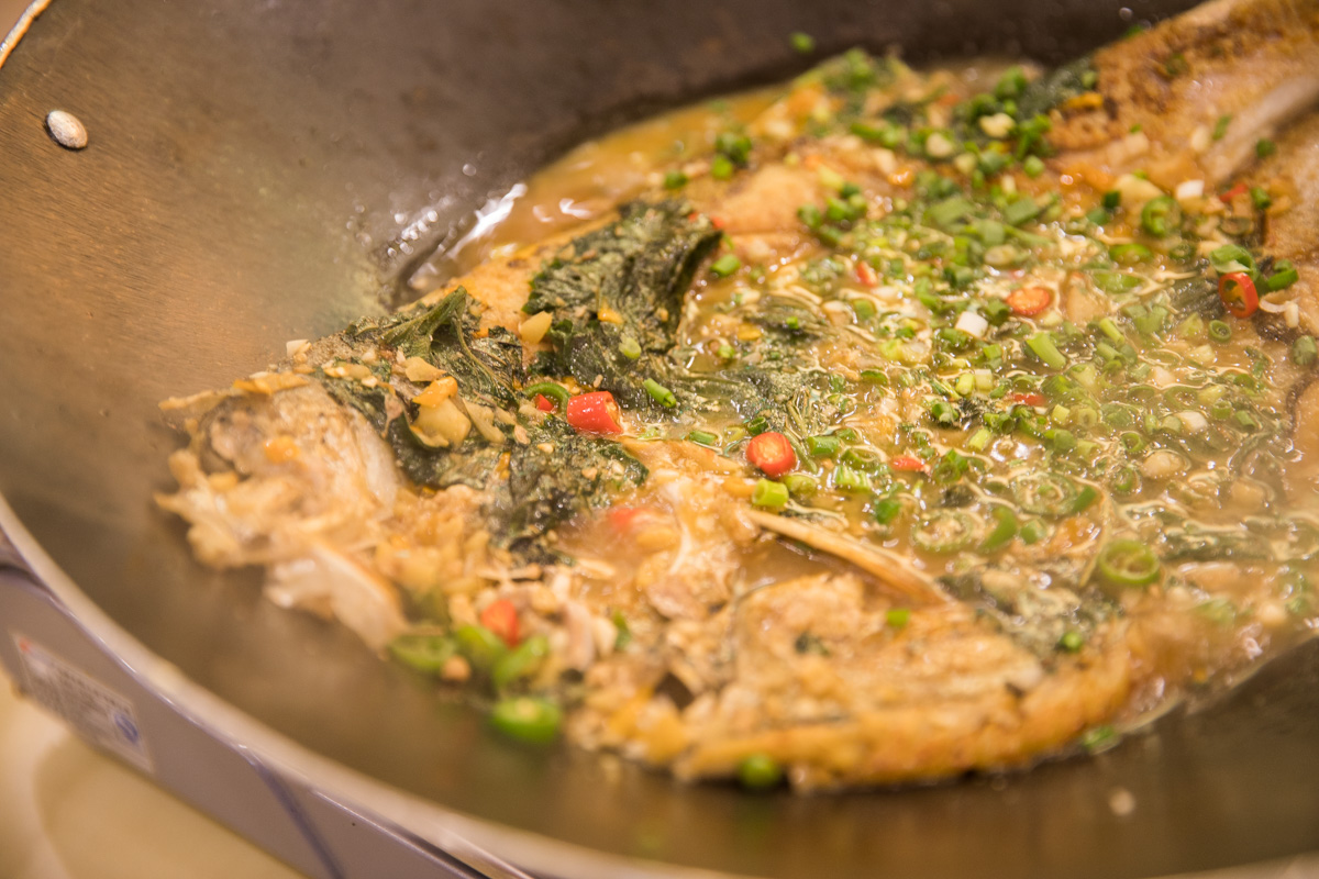 砂锅石头鱼,为何叫做石头鱼,原来其学名叫做笋壳鱼,栖息于水质清澈的沙石缝隙而得名,所以在野生鱼中算是非常上等难得的食材了。石头鱼的肉质本身就很鲜美,鱼刺少而细,所以吃起来也比较容易。他们家采用砂锅的做法,经过慢慢的文火炖制,鱼肉入味且底汤浓郁,些许微辣的感觉吃起来非常不错,况且石头鱼吃起来一点腥味都没有。