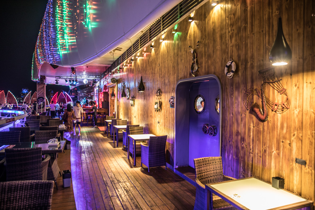 整个啤咔的建筑设计有点类似于古典游轮的风格,木板式的结构仿佛让人回到了20世纪初叶,再配搭暖黄色的背景灯和各种颜色的萤火灯,让人流连忘返。