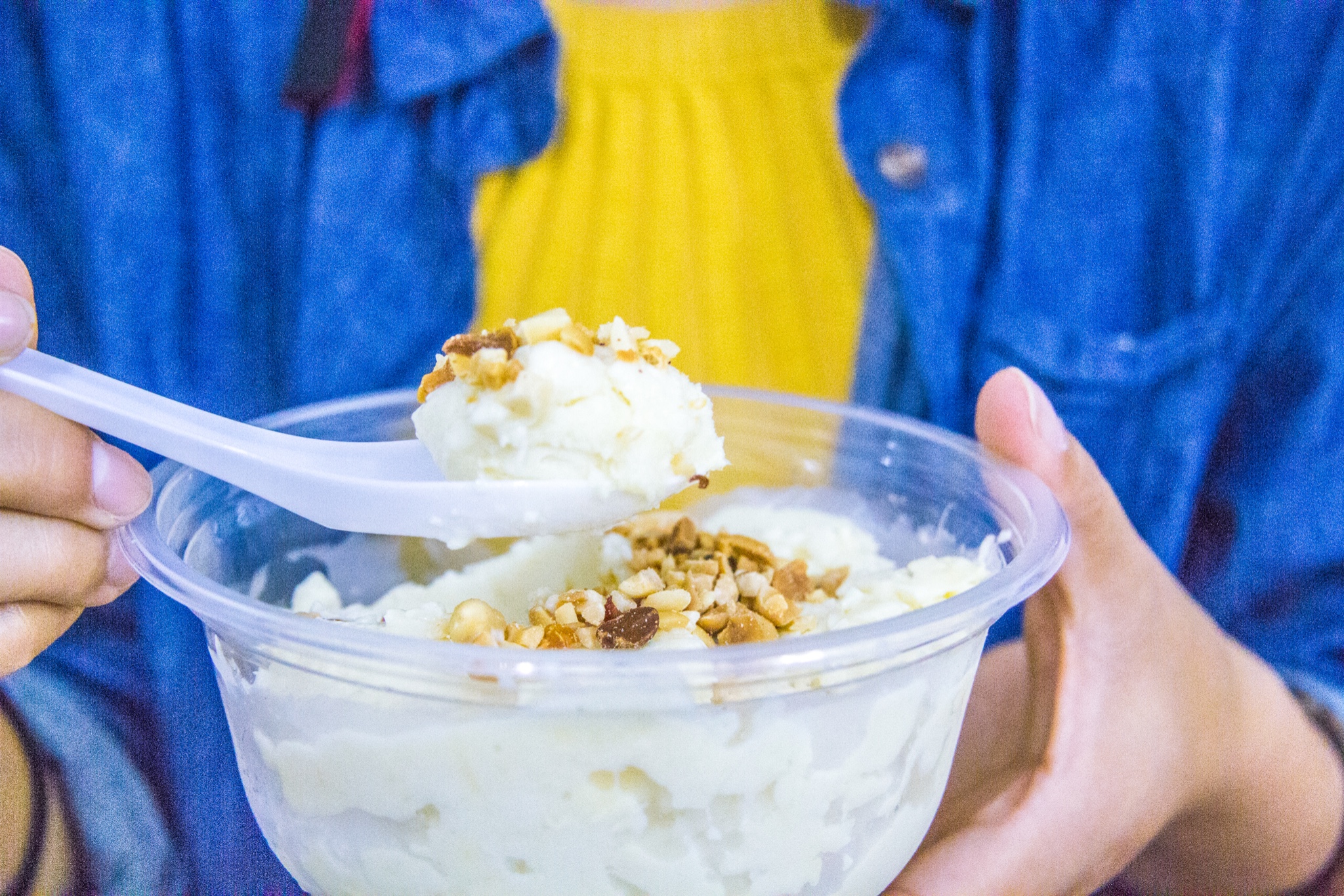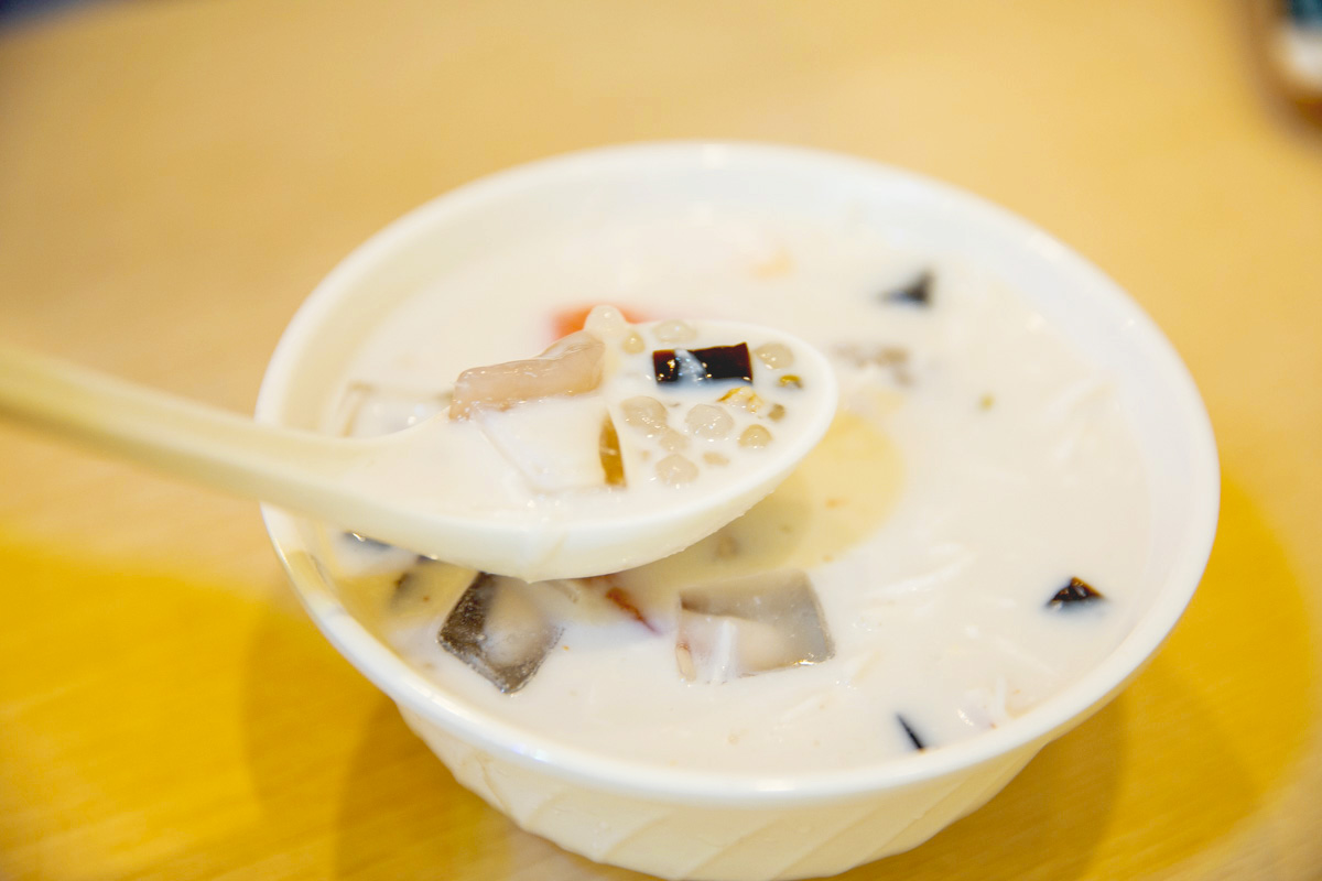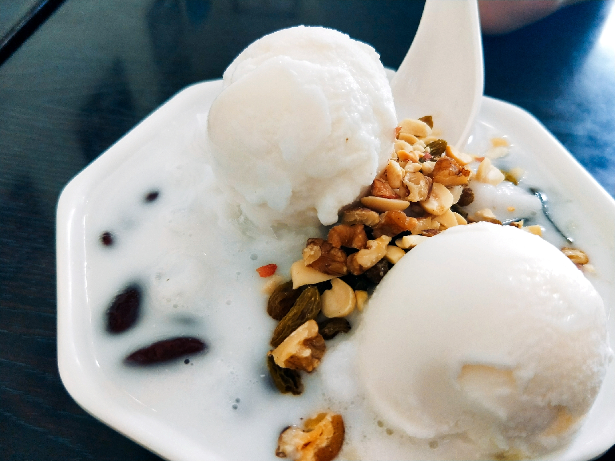 郑阿婆椰奶清补凉这里的清补凉也是一绝,我们买了两份,一份芒果的,一份椰奶的,原本以为是里面放上芒果块,结果发现不是。在添加完传统清补凉的豆类、薏米、龟苓膏、椰奶等外,每一份都加上两个大大的冰淇淋球,最后再洒一些花生粒、干枣片、核桃碎,营养美味又好看,在椰奶的香浓中又多了丝干果类的香脆和冰淇淋球的绵密!