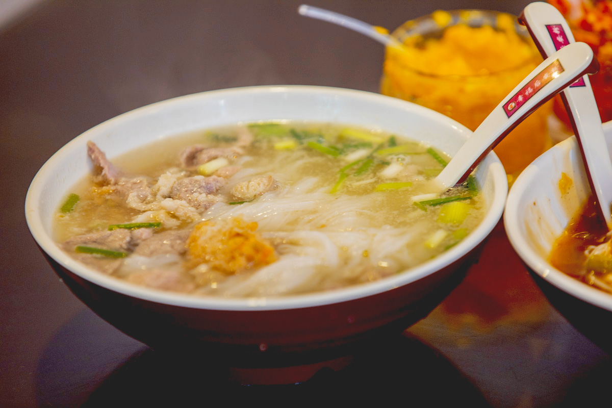 抱罗粉绝对可以称得上是海南最出名的特色小吃,口感鲜香略带酸辣,汤热味鲜,不膻不腻。佐以花生米、肉铺、炒笋丝、香菜、葱花,所有的配料搅拌在一起,米粉爽滑甘甜,味道实在是棒极了。