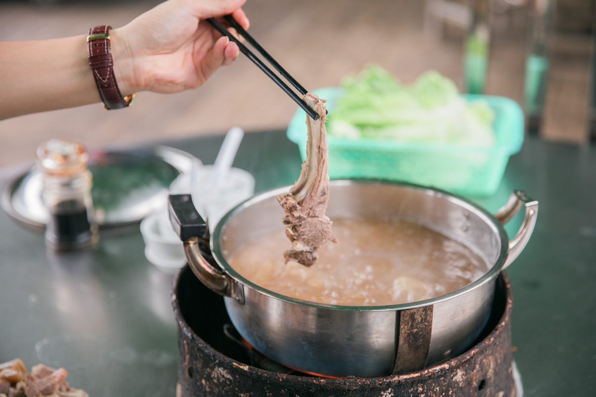 这里的锅底也不像别的“火锅”一样有鸳鸯麻辣番茄等各种选择,而是永远只有一种清汤锅,除了去掉腥味所必须的姜蒜葱外,并没有太多别的调料。将生羊肉片或者煮熟的羊排羊肉放进去片刻,就可食用。