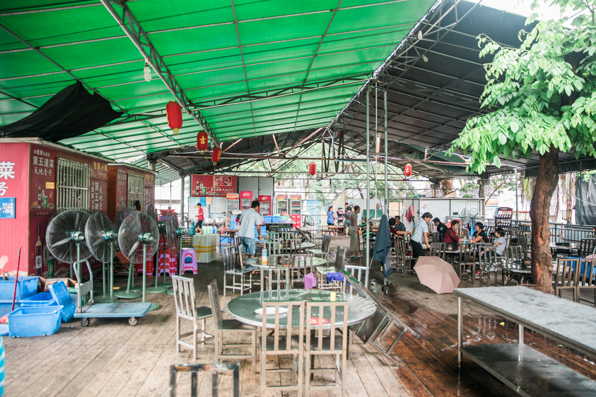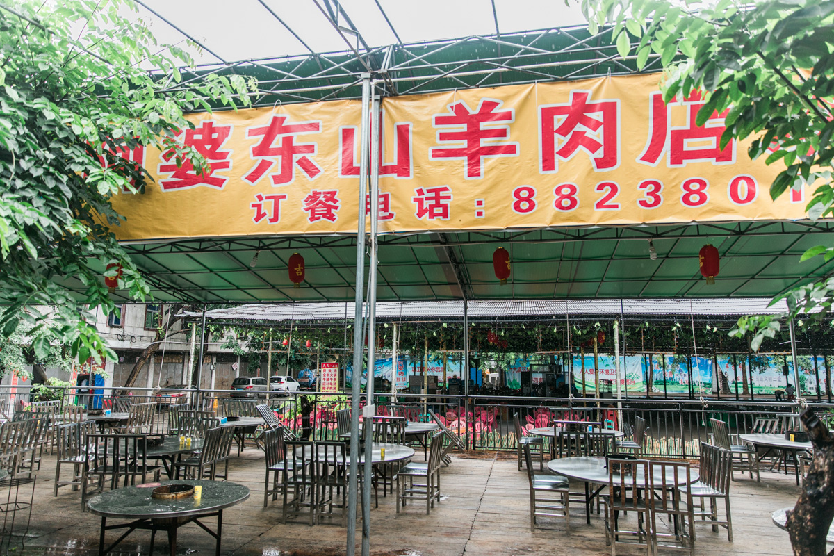 阿婆东山羊位置比较偏,招牌基本上属于放在你面前你都不一定能看得到,但是慕名而来的人很多,在旺季时客流量比较大,所以导航到附近后问问路人,基本无人不知无人不晓。等穿过胡同,看到一个略显简陋但宽敞的大排档就到了。