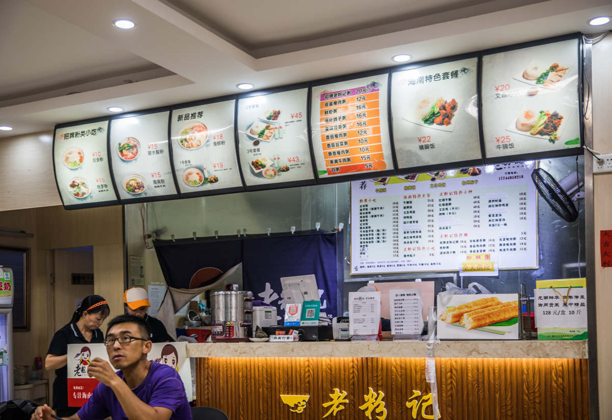 点餐台前挂着各类招牌小吃、套餐的价格,粉类价格在10-15元左右,猪脚饭、 文昌 鸡套餐会贵一些,在20元以上。但总体而言,消费中等,份量亦可以。