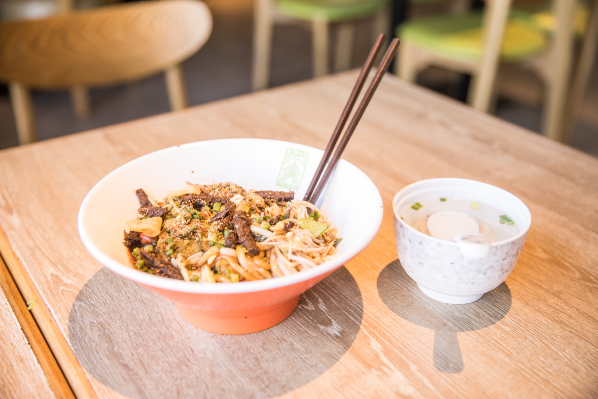 大椰一粉由于到的时间过了饭点,店里的人并不多。店员告知只有抱罗粉在售卖,于是点了一份招牌秘制牛肉抱罗粉(20元),码料十足,给的牛肉份量也不少。由于干拌粉吃起来略干,店里还贴心的送上了一碗清汤。